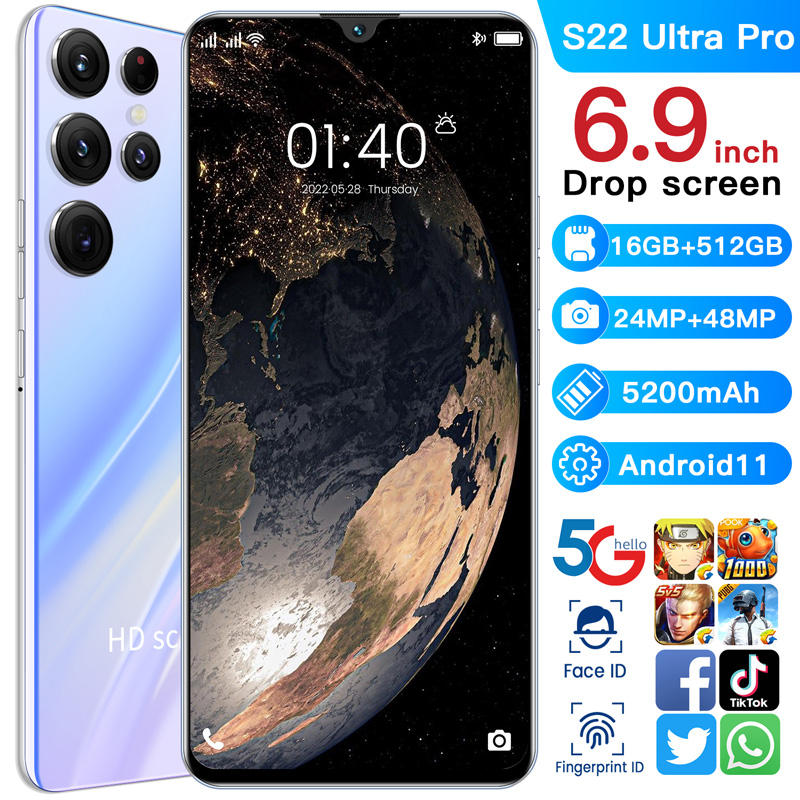 Essential details Private Mold: Yes Brand Name: Other CPU: Quad Core Screen: 6.5 Processor Brand: MTK 65XX series Front Camera: 2MP Rear Camera: 2MP Screen Resolution: 480x1014 Cellular: GSM, WCDMA Display Type: LCD Operation System: Android 5 Model Number: S22 Ultra Pro Feature: Dual SIM Card, Beauty Camera, fingerprint, Face Recognition Quick charge: None Display refresh rate: 60Hz Battery Capacity: 2000mAh Mobile phone type: Smart phone Product Name: android phone smart Model: S22 Ultra Pro Version: Gloabal Version OEM Smartphone: Yes Cheap Mobile Phone: Yes Unlocked Cellphone: Yes Keyword: smart phone mobile Keyword 1: phone mobile android