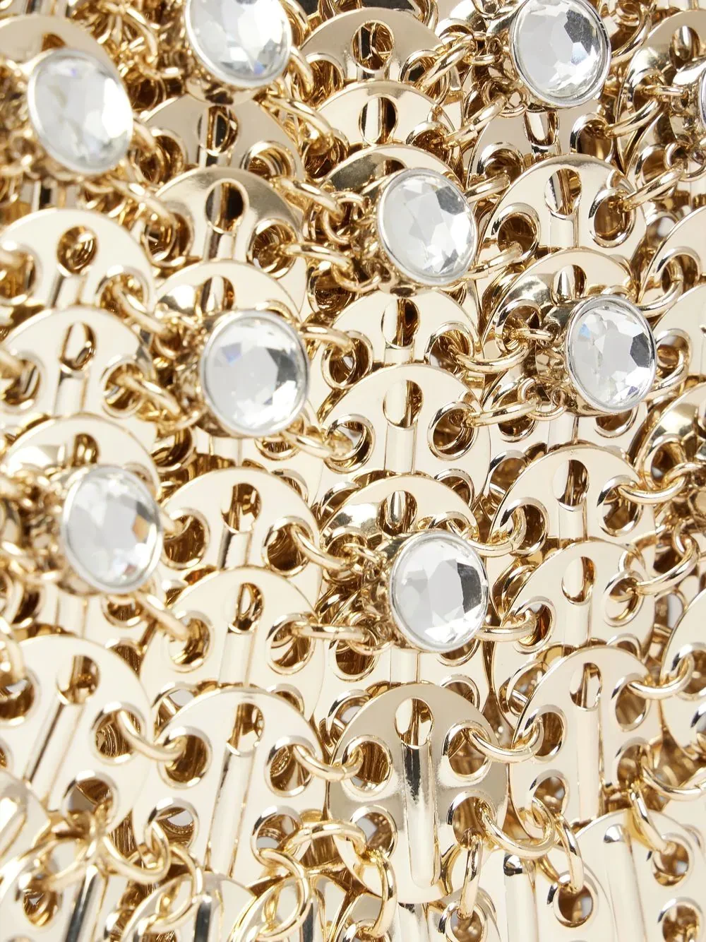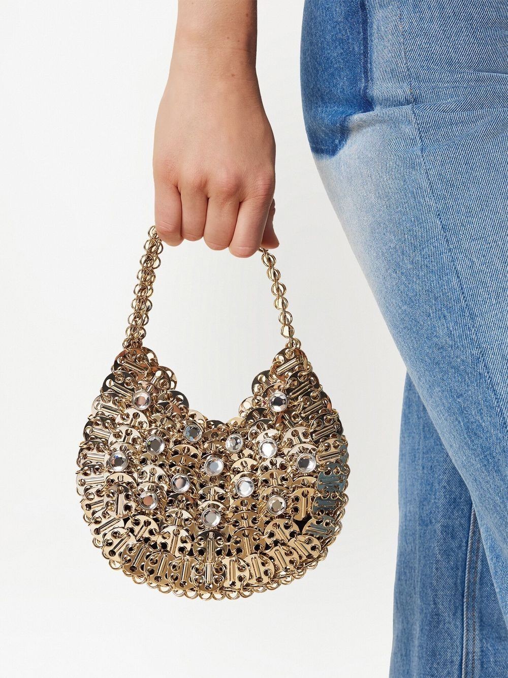 Crafted by assembling gold-tone mirror effect disks to form a striking reflective bag, this Paco Rabanne piece boasts metallic trims and is complete with tonal hardware.