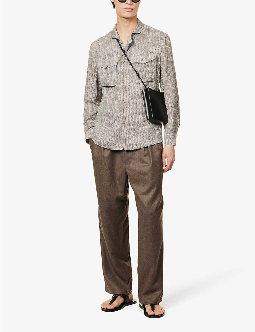 Regular fit, long sleeves, pleated cuffs, two buttoned flap pockets at chest, all-over graphic pattern, curved hem