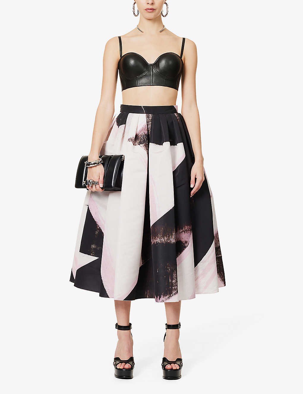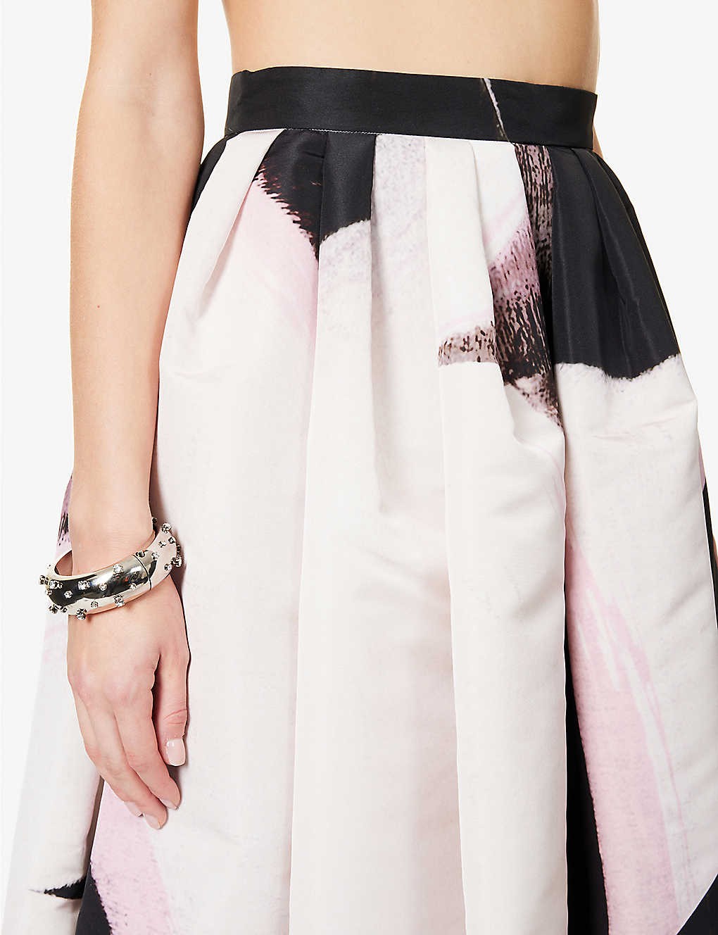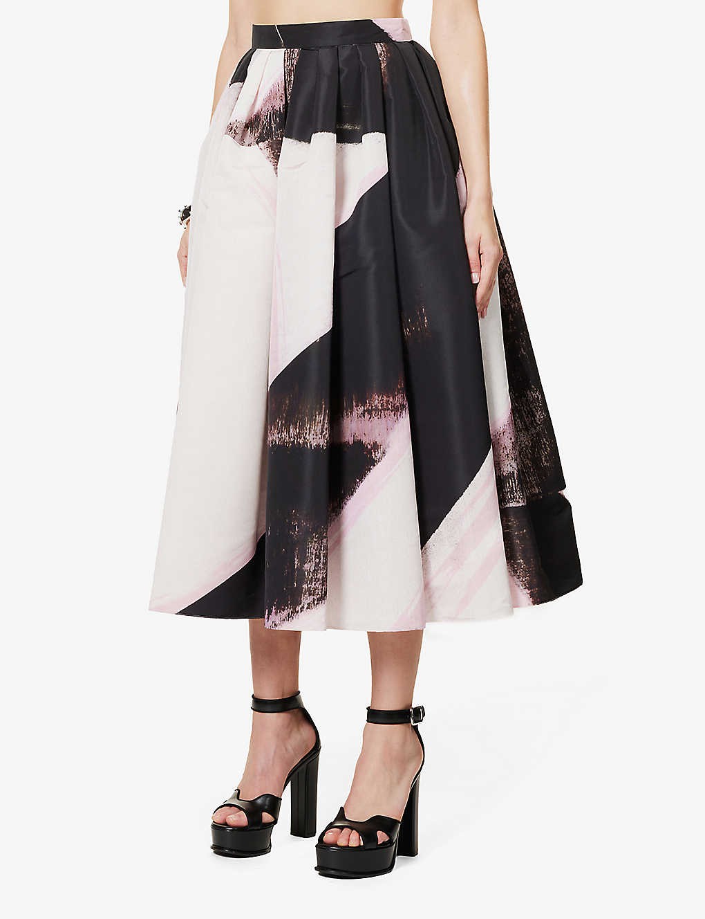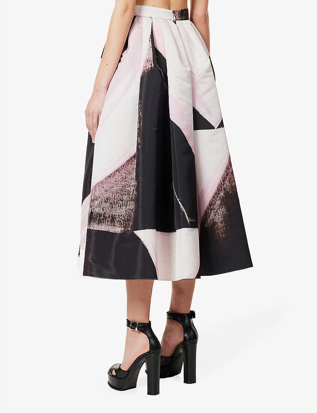 High-waist graphic-print woven midi skirt