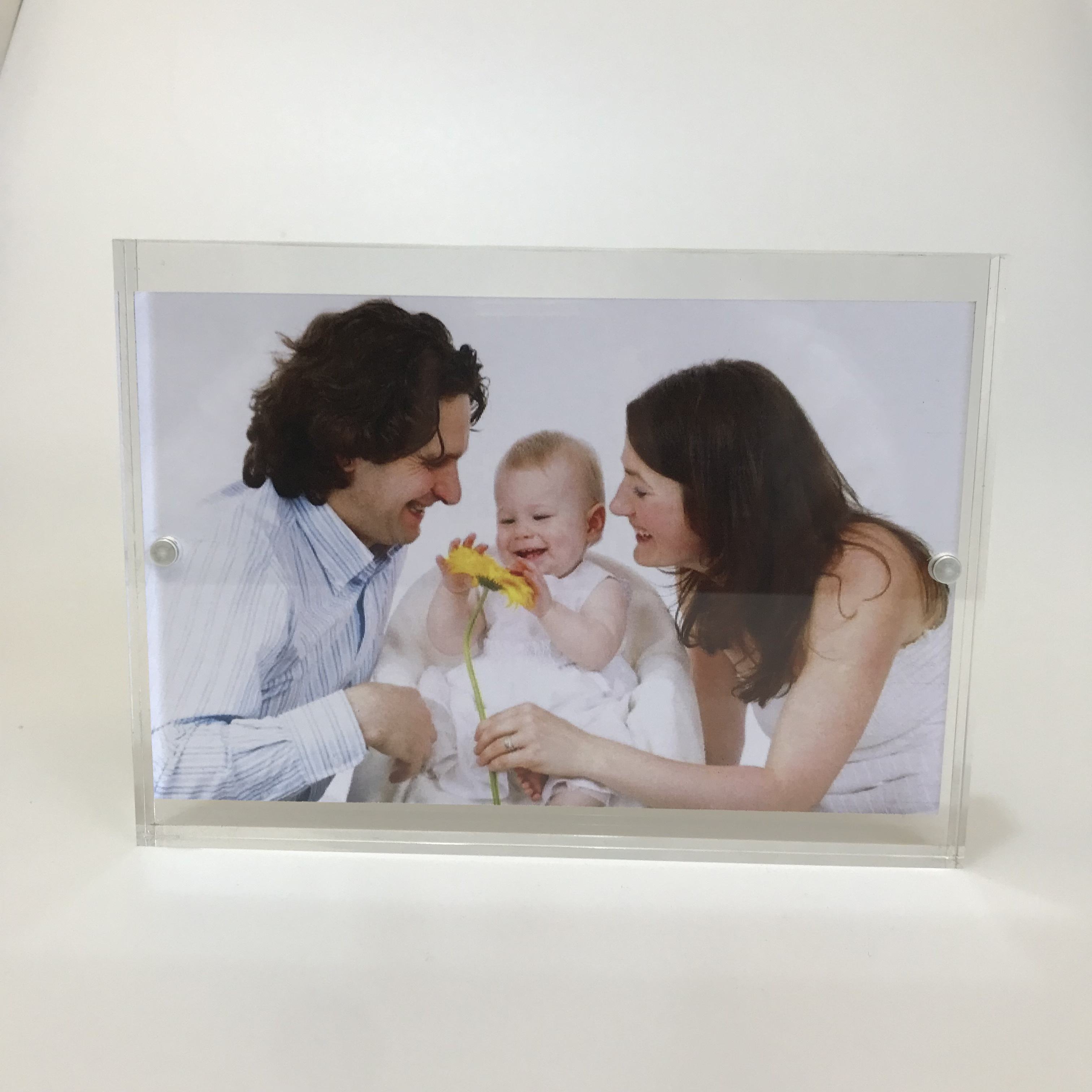 Essential details Place of Origin: Taiwan Brand Name: OEM, ODM Model Number: SK-5710 Type: Photo Frame Material: Acrylic Metal Type: No Printing: Silk screen printing, UV printing Print Method: 1 color, 2 color, 4 color Product Name: Acrylic Magnetic Picture Frames Usage: photo frame Feature: EC-Friendly, Environmentally Frame Size: Custom Size Accepted Logo: Can be printed or engraved Colors: Crystal clear Packing: 1pc/poly bag/bubble bag, several pieces in carton. Factory: Yes Shape: Square Size: 2x6", 3.5x5", 4x4", 4x6, 5x7, 6x8", Custom Size Accepted