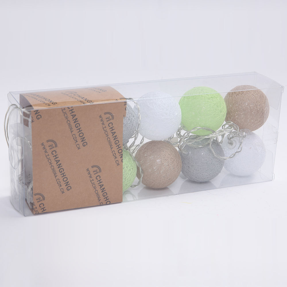 Essential details Type: Other Home Decor Design Style: Minimalist, Country, Modern Place of Origin: Zhejiang, China Brand Name: Changhong Model Number: CHLD-320-2 Material: Plastic Plastic Type: PC Voltage: 3V Rated Power: contact us Name: Home decoration led cotton ball string lights Line: transparent Lamp distance: 15cm Buttcock line: 30cm Battery: 2*AA Default number of lights: 10 PVC packing box size: 14*7*34cm Commercial Buyer: Restaurants, Fast Food and Takeaway Food Services, TV Shopping, Hotels Season: Fall Room Space Selection: Support
