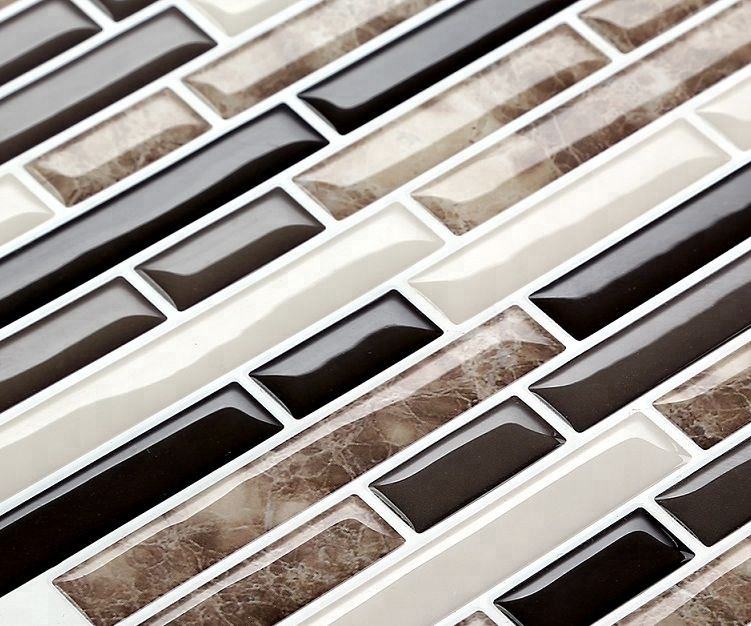 Essential details Place of Origin: Guangdong, China Brand Name: Vividtiles Model Number: T80112 Material: Vinyl Usage: WALL Shape: Strip Tile, Oblong subway brick Technics: Printing dispensing Theme: Art, Construction Specification: Multi-piece Package Function: Touch Sensing, 3D Mosaic Design Style: Art Decor, Novelty, Modern, Morden Luxury Product Name: Mosaic vinyl wall covering wallpaper Size: 279*235mm/11*9.25inch Thickness: 1-1.2mm Feature: waterproof,oilproof,eco-friendly Certificate: RoHs,Reach163,Porp 65 Application: all indoor smooth surface Useful life: 5-10 years OEM/ODM: Welcomed Main Markets: North American,Europe,Asian Commercial Buyer: Caterers