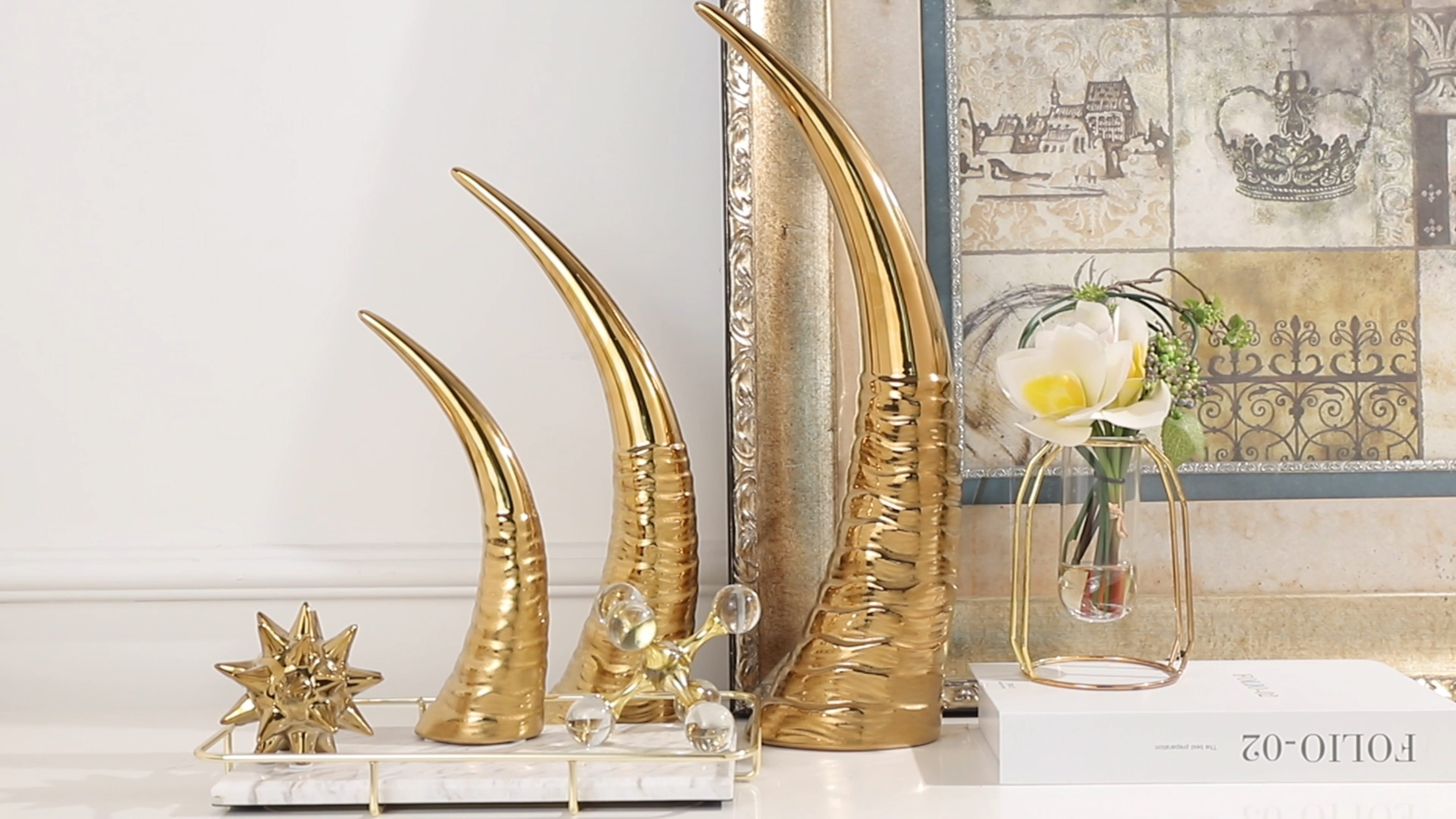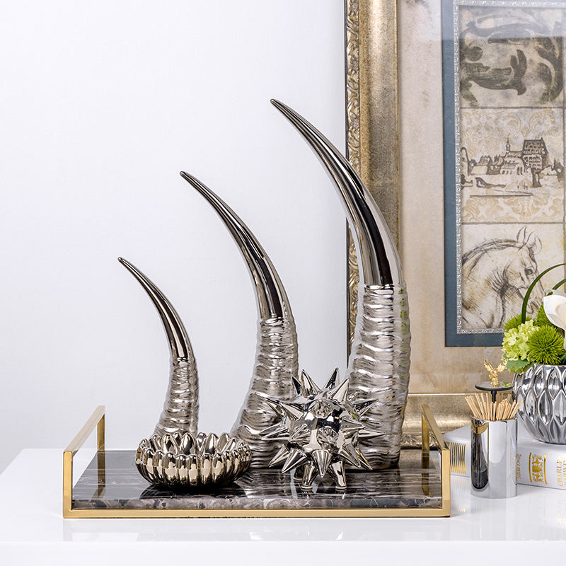 Essential details Type: Other Home Decor Occasion: Christmas Design Style: Contemporary Place of Origin: Guangdong, China Brand Name: Worldlive Model Number: NHTC2067 Material: Ceramic Product Name: Hot sale ox horn shape sublimation ceramic ornaments luxury home decor Usage: home decor style: light luxury use: home,furniture,wedding and hotel decoration Quality guarantee period: Normal use, won't fade within 5 years. Factory Area: 5000 square meters Feature: eco-friendly MOQ: MOQ is flexible, it better to order full carton for safer shippment size: 15*10.5*48.5cm/ 13.5*8.5*38cm/9.5*6.5*27cm OEM/ODM: Available (we have design team)