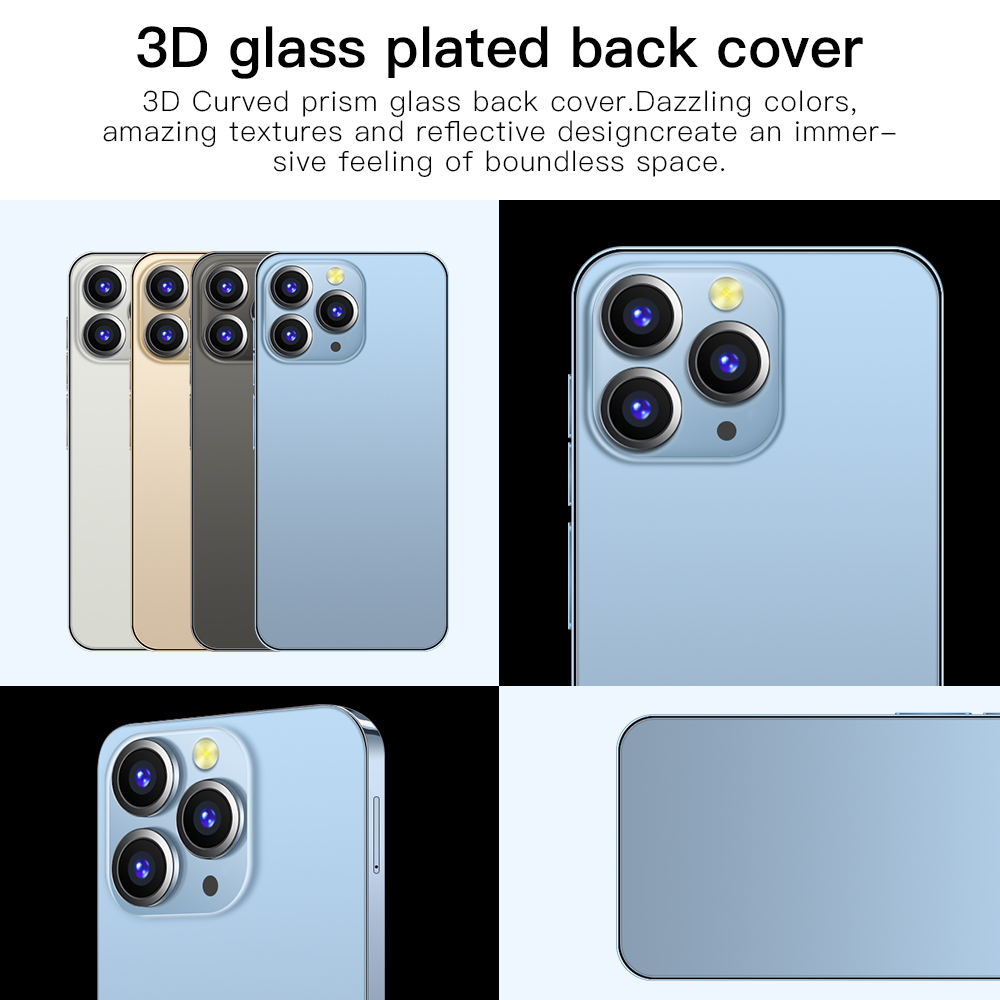 Essential details Private Mold: Yes Brand Name: OEM CPU: Deca Core Screen: 6.7 Processor Brand: Spreadtrum Front Camera: 32.0 Mp Rear Camera: 50 MP Screen Resolution: 1280x768 Cellular: GSM, WCDMA, LTE, 5G, CDMA, CDMA2000, TD-SCDMA, Others Display Type: TFT Operation System: Android 11 Model Number: I13 PRO MAX Feature: Dual SIM Card, Qwerty Keyboard, Waterproof, Shockproof, Gaming, Beauty Camera, Gesture control, Face Recognition, SDK available Quick charge: 65W Display refresh rate: 120Hz Battery Capacity: 6000-6999mAh, 6800 mAh Mobile phone type: Smart phone Product Name: I13 PRO MAX Smart Phone Screen Size: 6.7 Inch OS: Android 11 SIM Card: Dual card dual standby. support F card Resolution: HD 480*1014 pixels RAM/ROM: 16GB 512GB Color: BLACK BLUE GOLD WHITE Type: Mobile Phones Version: GLOBAL
