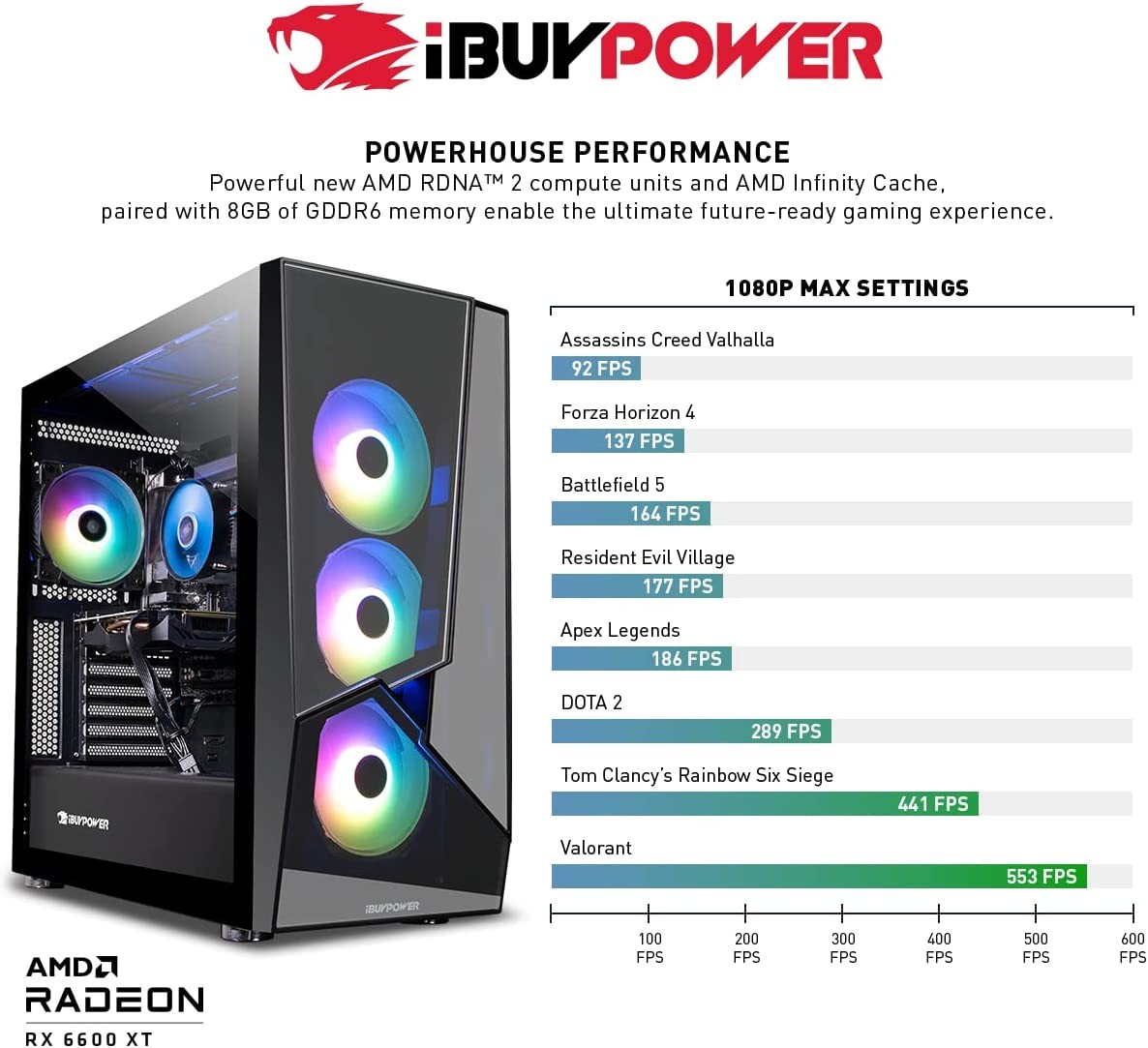 Graphics: Radeon RX 6600XT 8 GB Dedicated Gaming Video Card | VR Ready | 1x HDMI | 3x Display Port