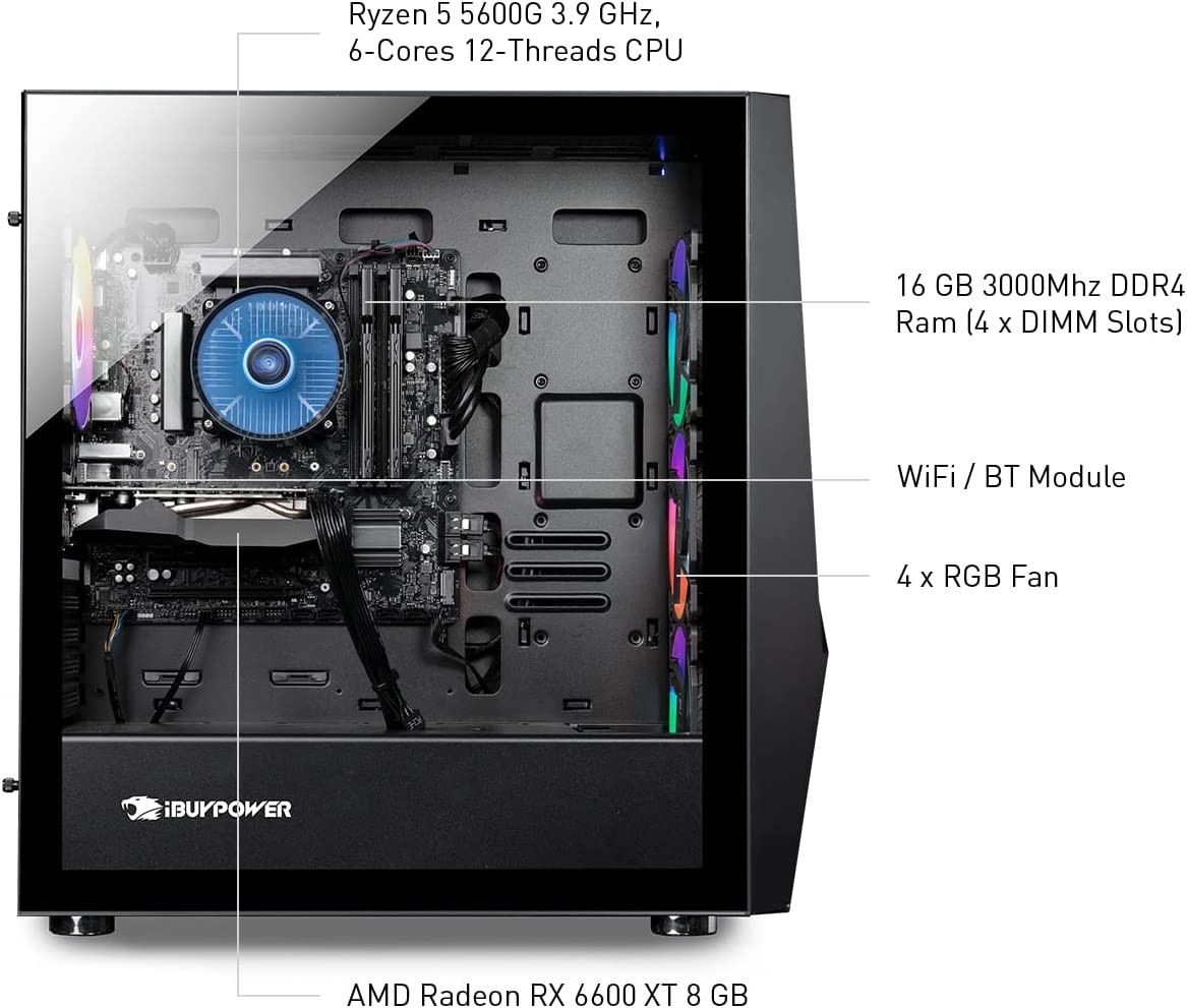 System: iBUYPOWER SlateMR 215A AMD Ryzen 5 5600G 3.9GHz (4.4 GHz Max Turbo) | 16GB DDR4 RAM | 480 GB SSD | OEM Fan Cooling | Genuine Windows 11 Home 64-bit