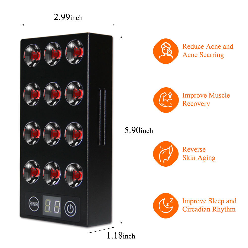 Essential details Place of Origin: Guangdong, China Brand Name: Idealight Model Number: IL-RTL12-A Warranty: 2 years After-sales Service Provided: Free spare parts Type: HAND HELD Feature: Skin Tightening, Pigment Removal, Acne Treatment, Skin Rejuvenation, Wrinkle Remover, Weight loss Plugs Type: AU, UK, EU, US Application: For Home Use Target Area: Body, Face, Legs/Arms, Neck/Throat, Feet, Other, Hands, Head, Nose Number of lights: 12pcs 3w LED Chip Input voltage: 100-240V AC Frequency: 50/60Hz Lens: 30°60° Light denisty: >60mW/cm² Dimension: 150*76*30mm Spectrum: 850:660 or Customize Function: Digital Timer insert, fix 10mins Package included: 1pc light 1pc USB Type-c cable Gross weight: 0.5kg/pc
