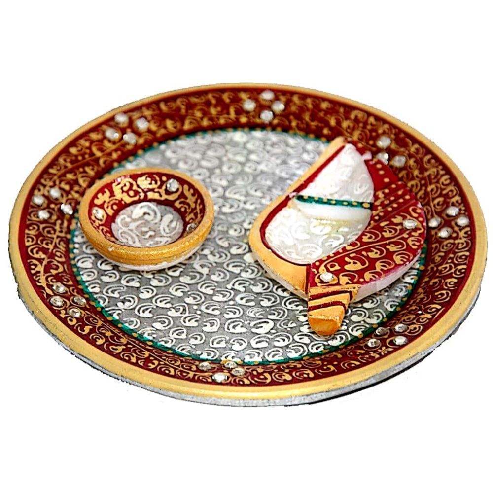 Essential details Type: Other Home Decor Occasion: Diwali Design Style: Traditional Place of Origin: Jaipur Brand Name: KALINGA ARTS Model Number: KAM068 Material: Marble Product Name: Rajasthani Marble Handicraft Pooja Thali Style: Multi Color Usage: Home Decorative Base Material: Marble MOQ: 20 Sample: Yes, Paid Sample is Available Port: Jaipur, Rajasthan Color: Multi Color Accessories: Garden Payment: T/T