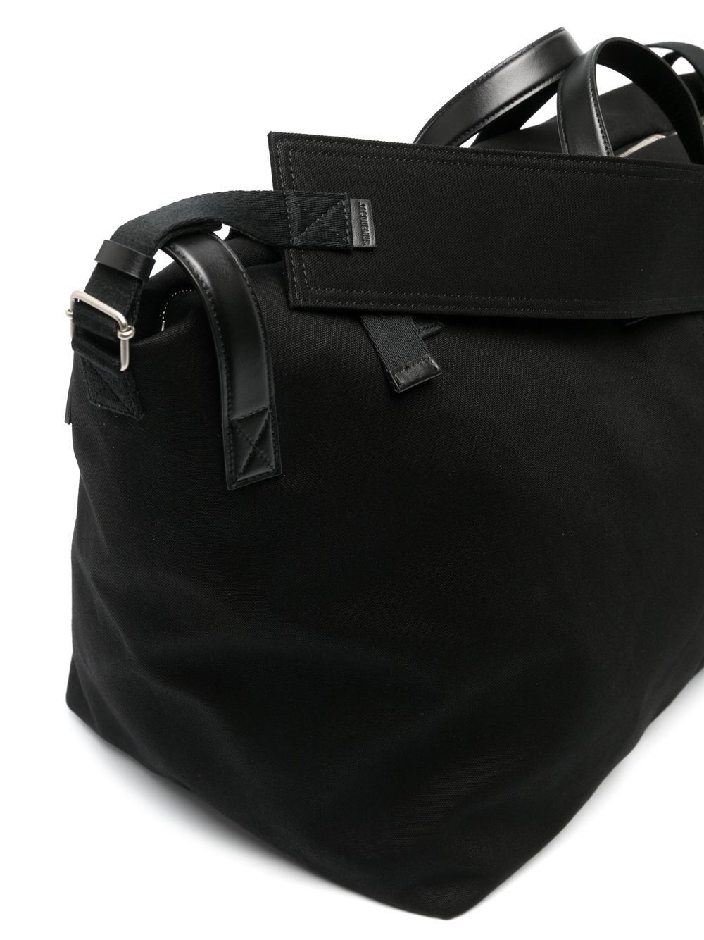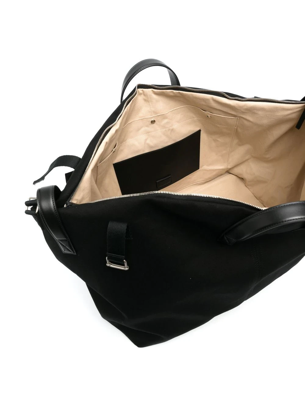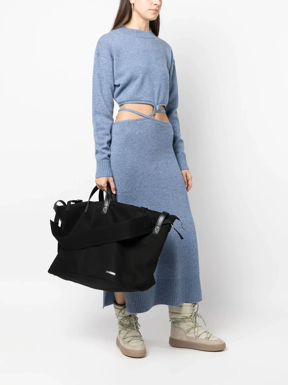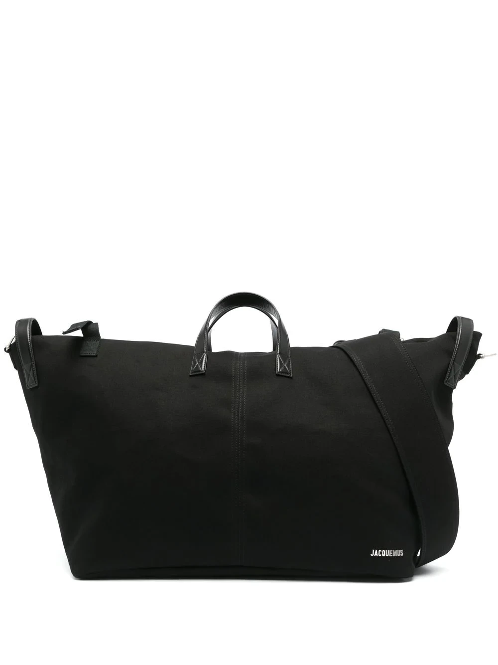 Jacquemus pairs wearability with minimalist style for this Weekender bag. In a tonal black hue, the spacious design is detailed with understated logo lettering and finished with a detachable shoulder strap.