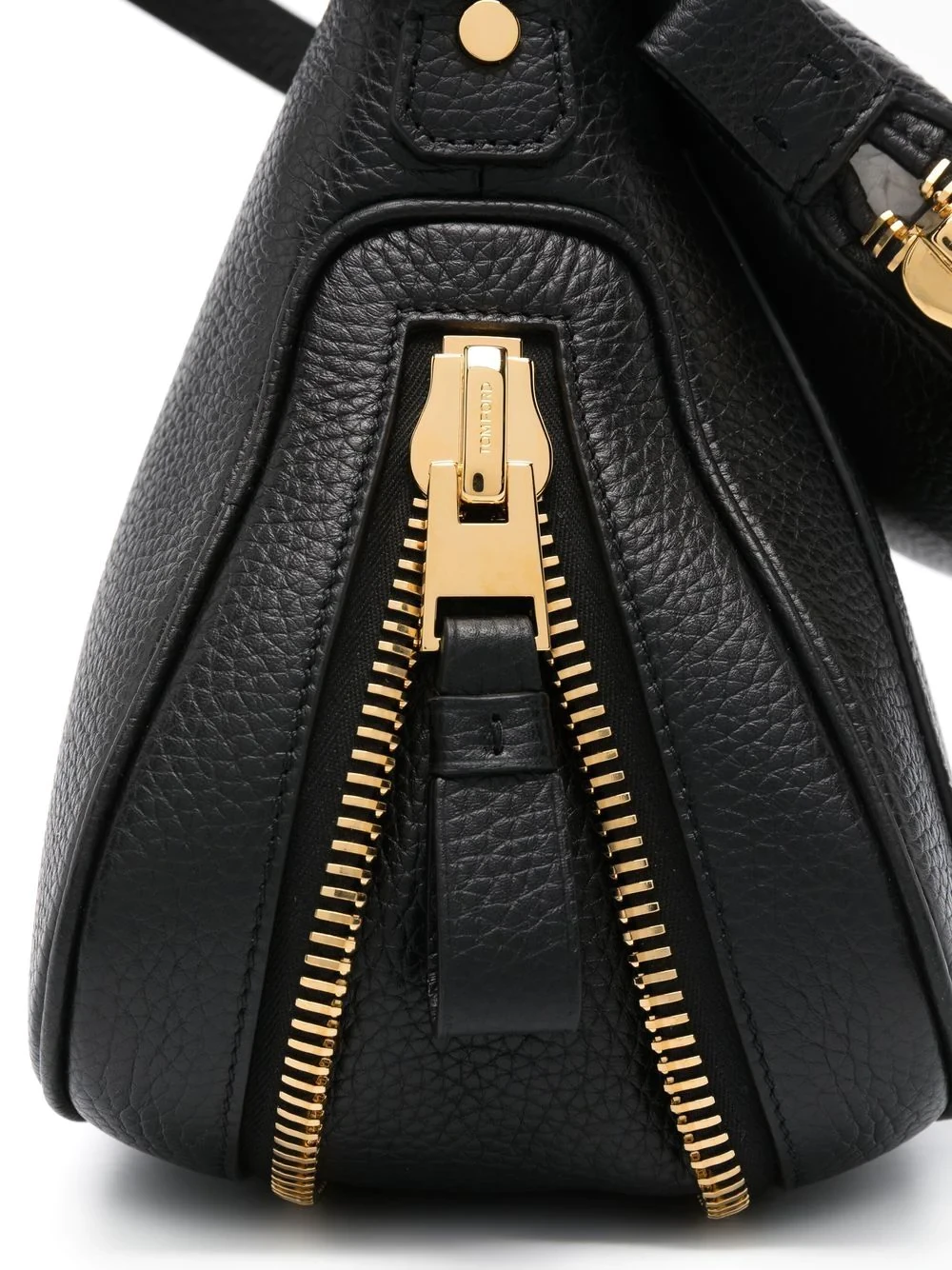 Crafted from grained calf leather, the Jennifer bag is imagined by Tom Ford in a classic black hue. The rounded shape adds a soft touch to the timeless top-handle design.