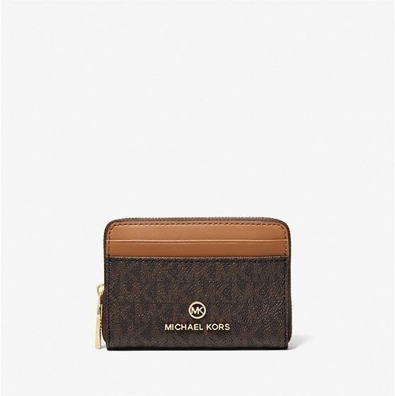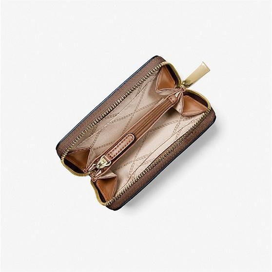Crafted from signature-print canvas, this zip-around Jet Set wallet boasts multiple exterior card slots and opens to reveal an interior with space for your cash and coins. Our gold-tone charm and hardware set an elegant tone––slip it into a coordinating crossbody bag in the daytime or a clutch come evening.