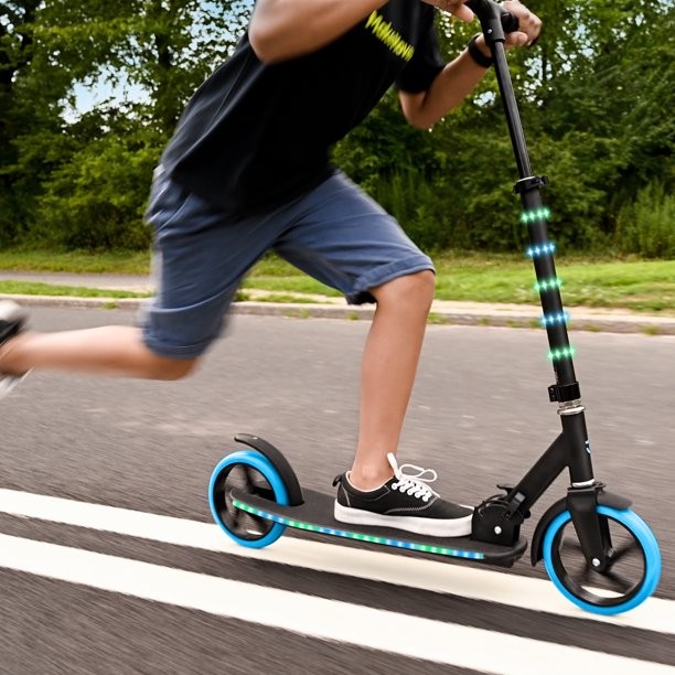 Moving has never been so much fun as it is with the Jetson Helix, an all-new light-up kick scooter. This is the perfect ride for kids who are eager to take their scootering to the next level and upgrade their adventures. The Jetson Helix comes equipped with large 8” light-up wheels that shine brightly as they are ridden. The bright, sleek LED lights along the stem and deck – and which come preprogrammed with multiple light patterns to choose from - make the Jetson Helix a scooter to be seen in as well as improving visibility and safety. Weighing only 10 lb the Helix is ultra-lightweight making it easy to carry and store. This makes it a great choice for all day play; you can take it on a long ride, but not have to worry about it being a problem when you need to carry it with you. Its height-adjustable handlebar also means that it is super easy to modify the Jetson Helix as your child grows.