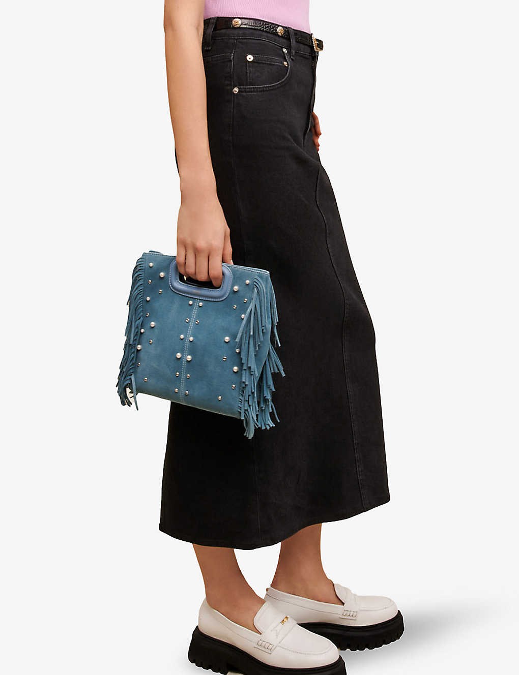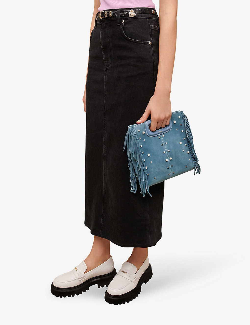 Jextra high-waisted straight-cut stretch-denim midi skirt