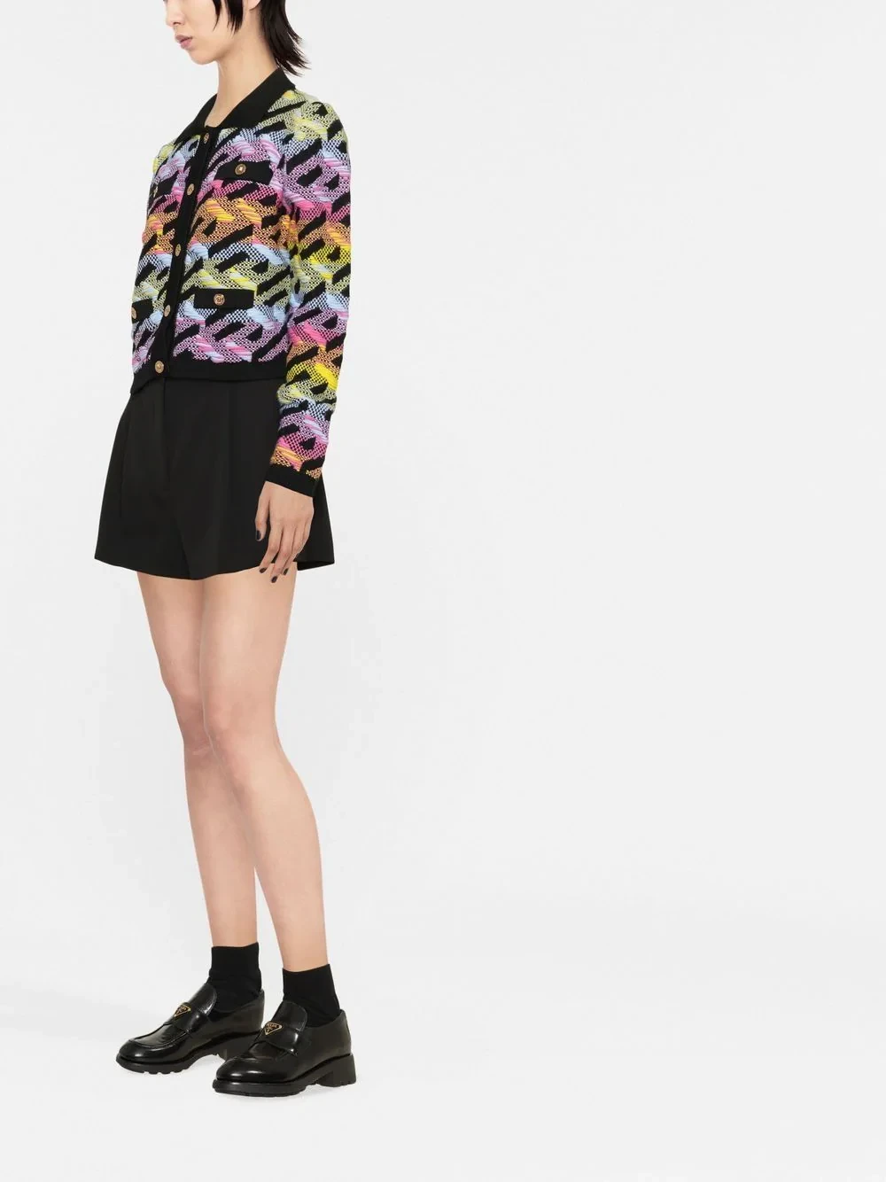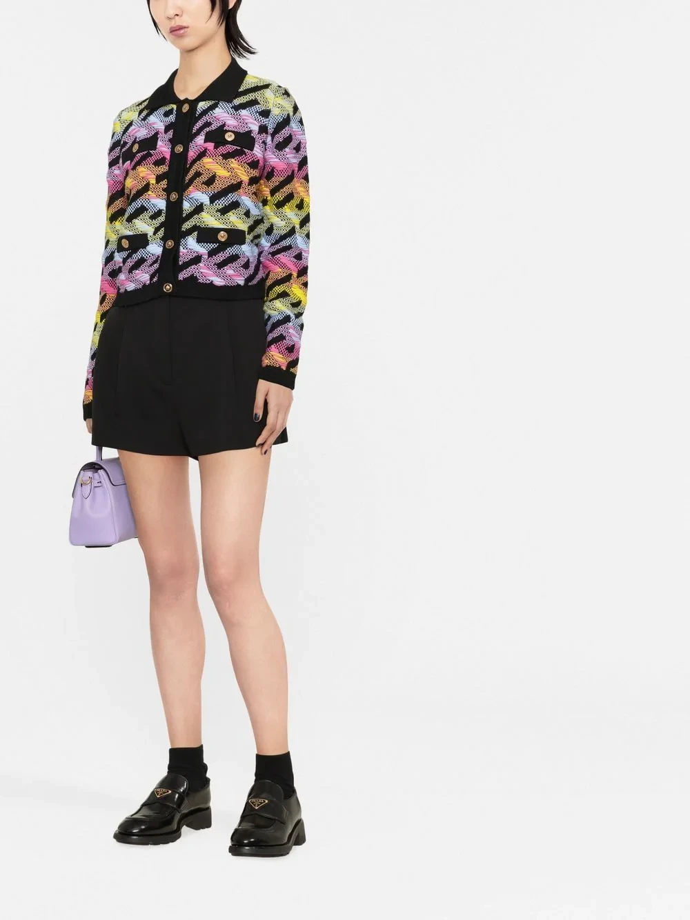 Versace's iconic house motifs elevate this wool cardigan: while the La Greca pattern takes focus among the multicoloured chunky knit, the emblematic Medusa Head appears embossed in the gold-tone buttons.