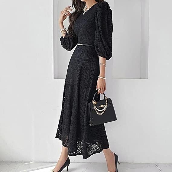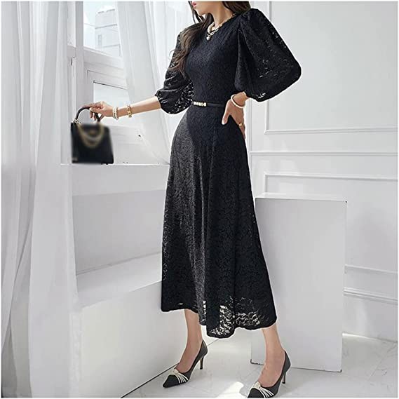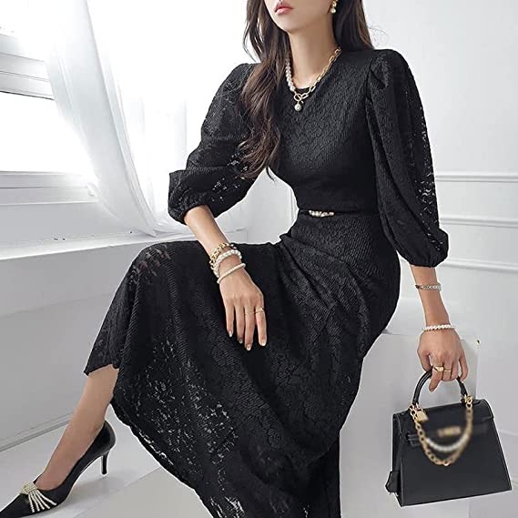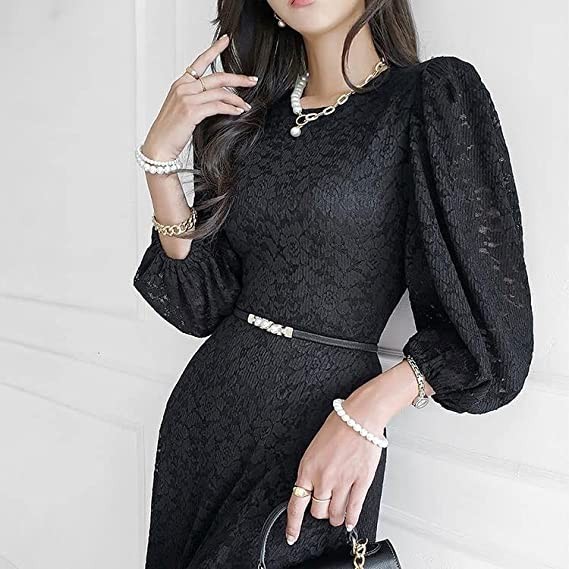 This lace dress is very Korean style, with a nice waist and the right length of sleeves. Great!