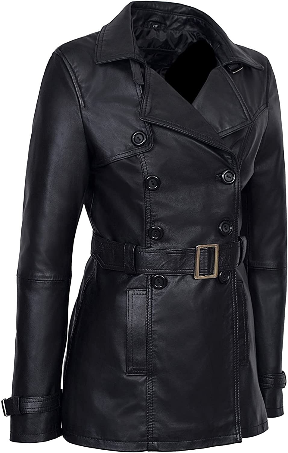 - ✔️'TRENCH' Ladies BLACK Classic Mid-Length Designer ? leather jacket coat for women by VIOLET SPORTS
