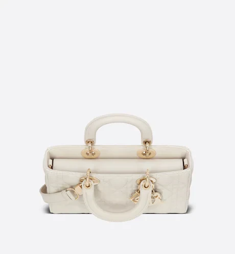 The Lady D-Joy bag captures the House's vision of elegance and beauty. Refined and sleek, this timeless style showcases the iconic streamlined aesthetic of the Lady Dior line. Crafted in latte lambskin with Cannage stitching, it is enhanced by pale gold-finish metal 'D.I.O.R.' charms embellishing its silhouette. Featuring one removable chain shoulder strap and another adjustable and removable leather shoulder strap, the Lady D-Joy bag can be carried by hand or worn crossbody as a daily companion.