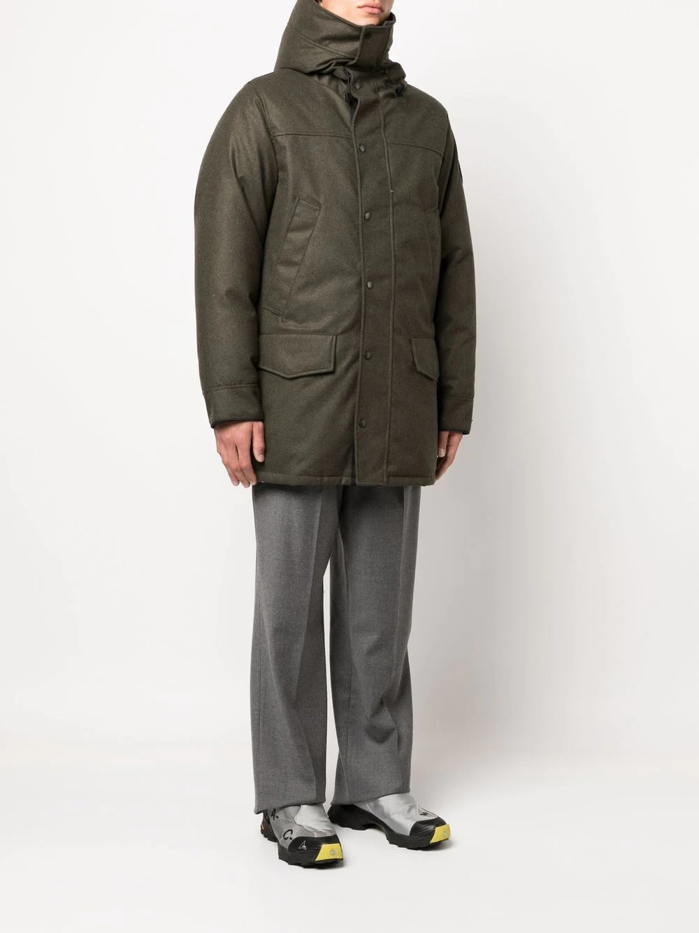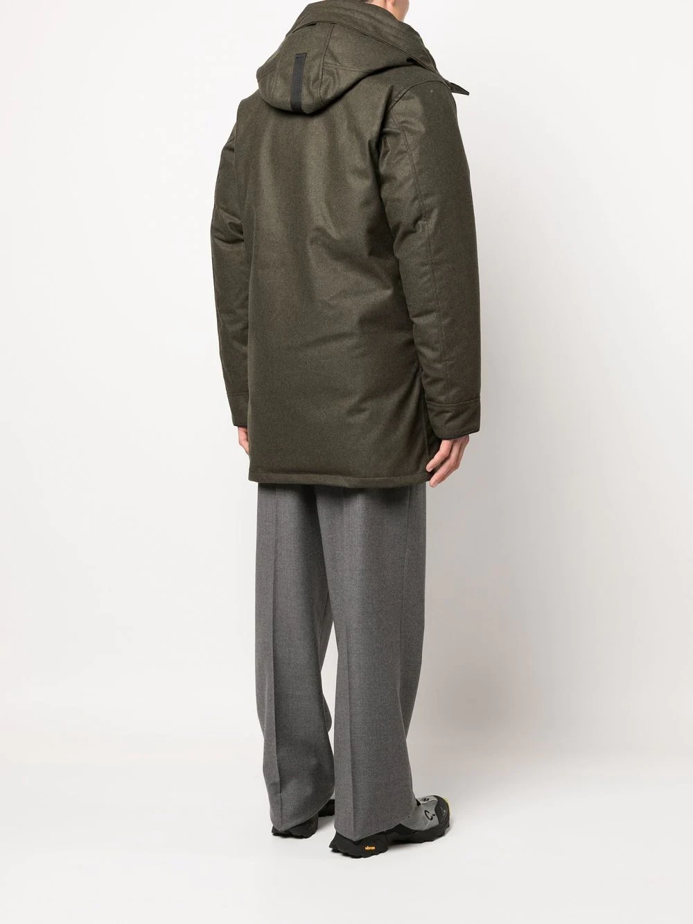 Known for its collections of padded outerwear and cold-weather designs, Canada Goose continues to combine style and practicality. Crafted from a recycled wool blend, this Langford parka features a drawstring hood and high chin guard for added heat retention.