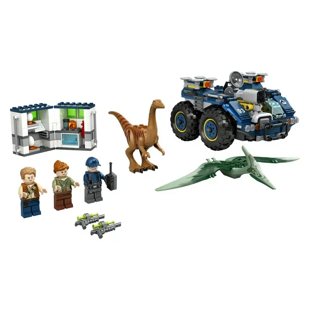 This set includes 3 minifigures – Owen Grady, Claire Dearing and an ACU Trooper –plus posable Gallimimus and Pteranodon toy figures, which children can catch with the research vehicle's net shooter