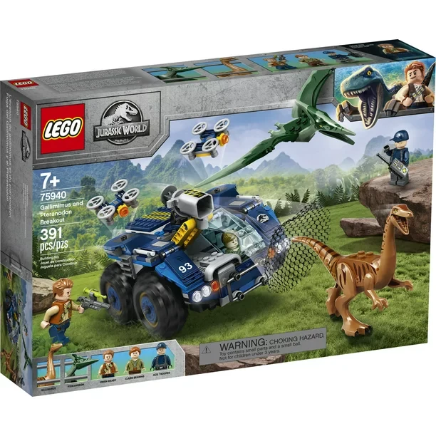 Kids can build their own LEGO Jurassic World of dinosaur-chasing action with this Gallimimus and Pteranodon Breakout 75940 toy playset. It features a toy research vehicle with a dual minifigure cockpit, net shooter, 2 detachable drones, a removable mini lab and lots of accessory elements to inspire hours of creative solo or social play. This building set for kids also includes 3 LEGO Jurassic World minifigures and an awesome Gallimimus dinosaur figure and Pteranodon toy figure to role-play exciting adventures. Clear, illustrated instructions mean that even if your youngster is new to LEGO toys, they can build with confidence right away. Featuring molded, buildable dinosaur figures, minifigures, detailed vehicles and more, LEGO Jurassic World construction toys make awesome birthday presents for kids and fans of all ages. They can relive scenes from the animated series and movies, create new stories or just display the collectible models.