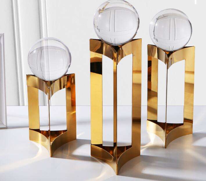 Essential details Type: Other Home Decor Place of Origin: Jiangsu, China Model Number: Z108 Material: Crystal and metal Product Name: triangular crystal ball decoration Color: Gold,silver Usage: Home /wedding Decorations.Gifts Size 1: 10cm*10cm*23.5cm Size 2: 10cm*10cm*28.5cm size3: 10cm*10cm*33.5cm MOQ: 10pcs Material/type: Alloy and crystal ball Style: modern simple Feature: electroplate