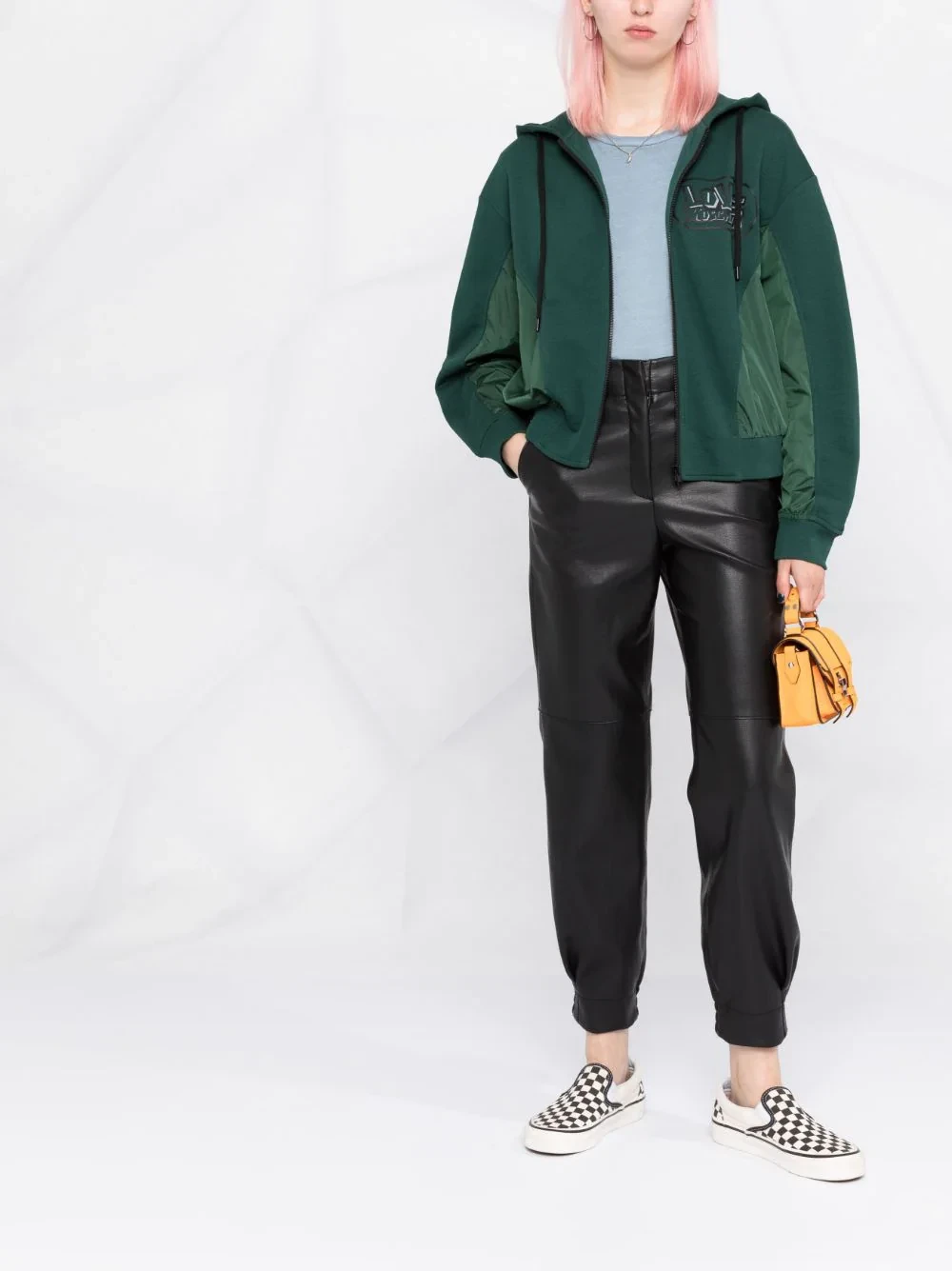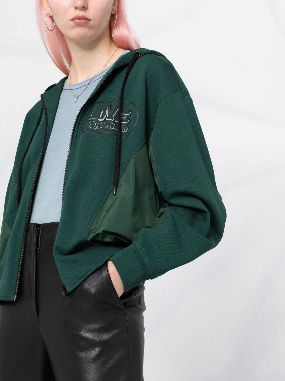 Love Moschino's playful aesthetic is evident in this track jacket. Crafted from forest green cotton, this hoodie features a tonal panelled design and is accented with a logo print to the front that offers instant recognition.