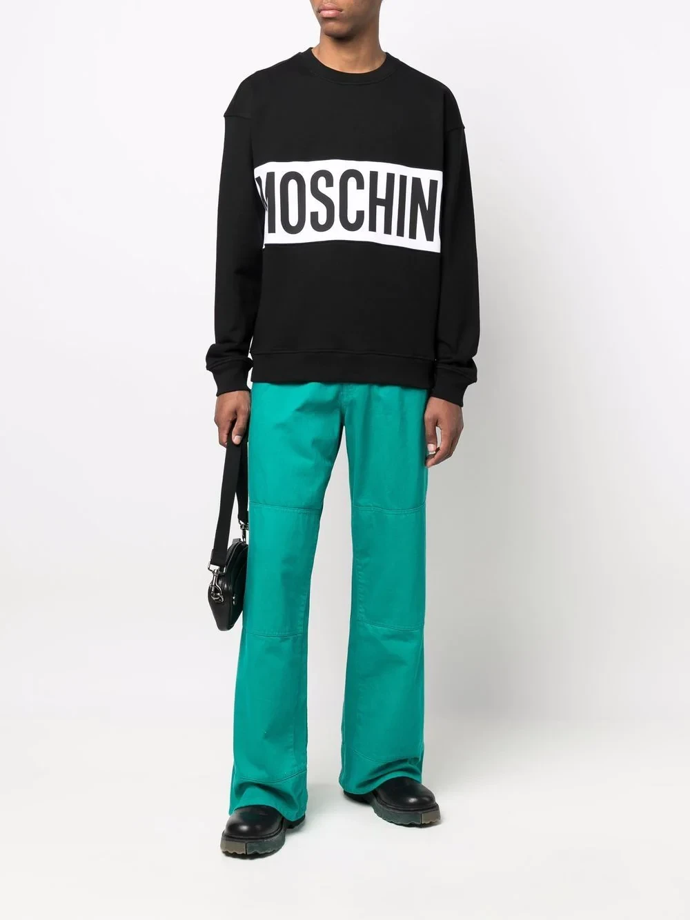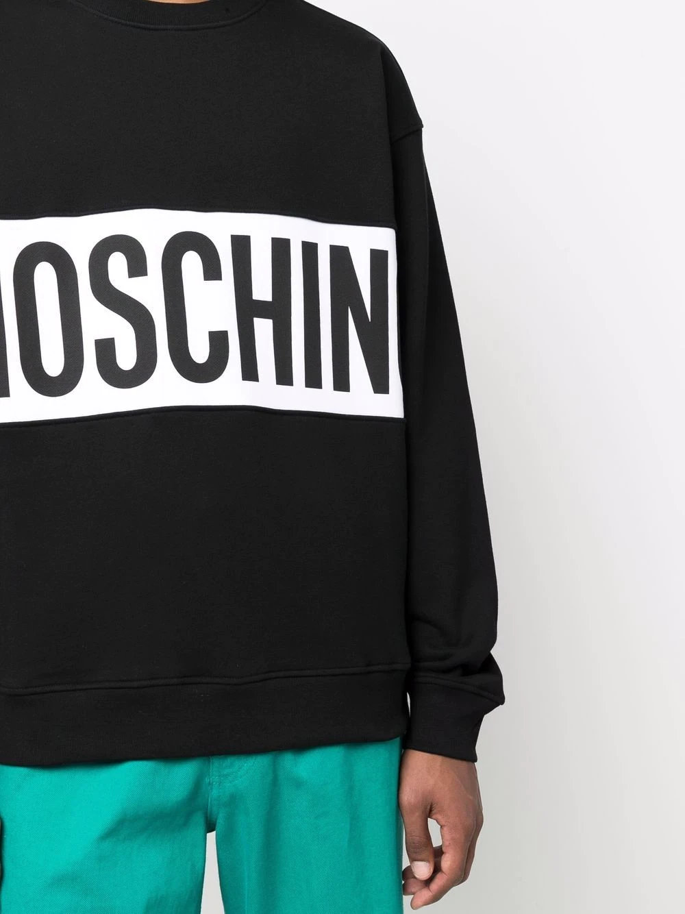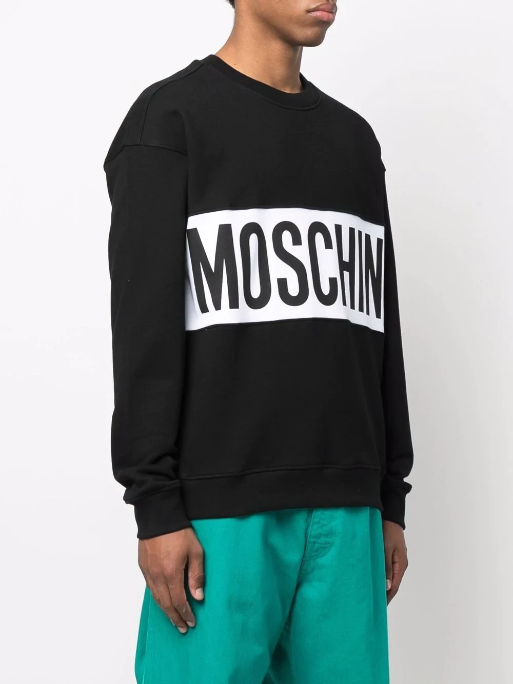 Italian label Moschino is known for adding bold signatures to classic pieces. A prime example of that, this crew-neck sweatshirt is detailed with a large contrasting logo to the front.