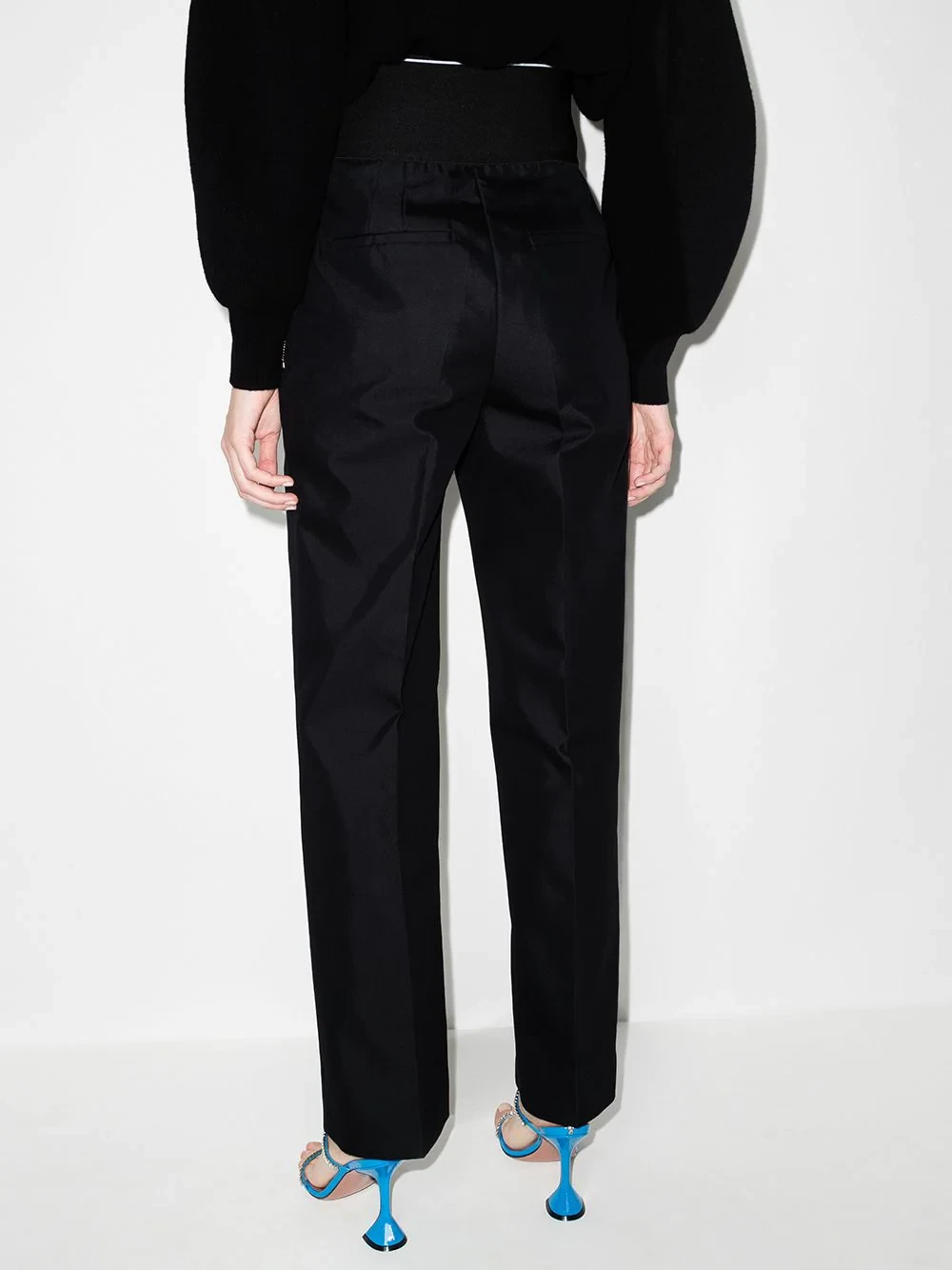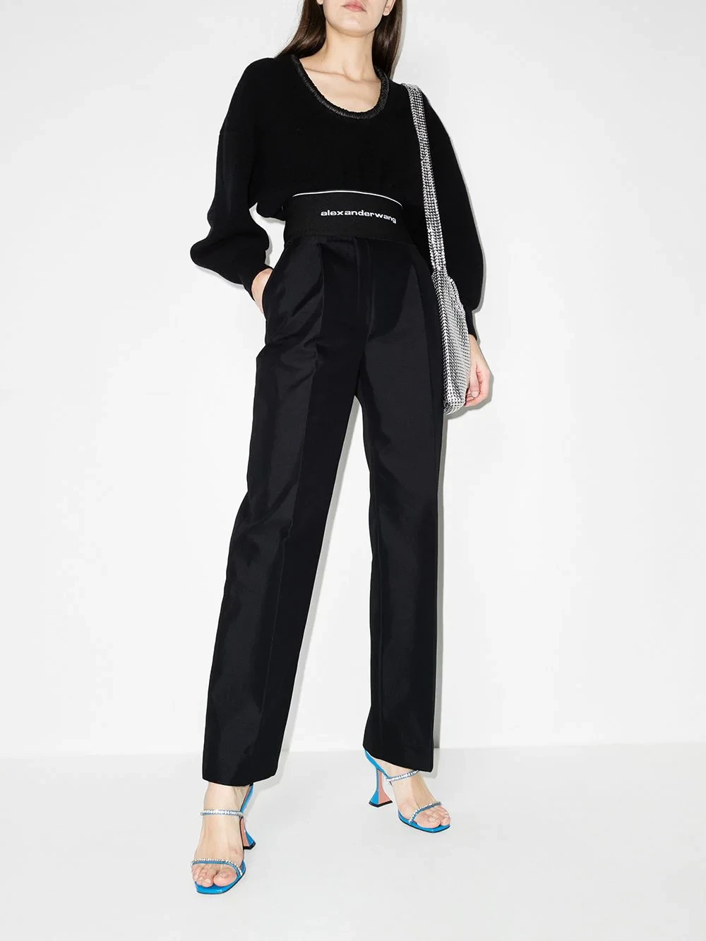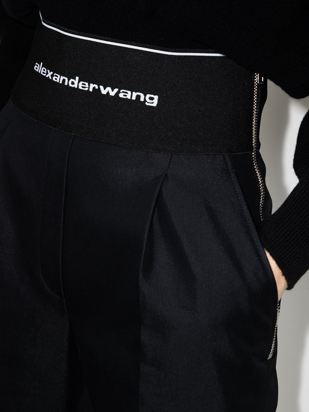 Simplicity and branding come together in these trousers from Alexander Wang. Presented in classic black, the pair sits high at the waist and allows the contrasting white logo to take the focus.