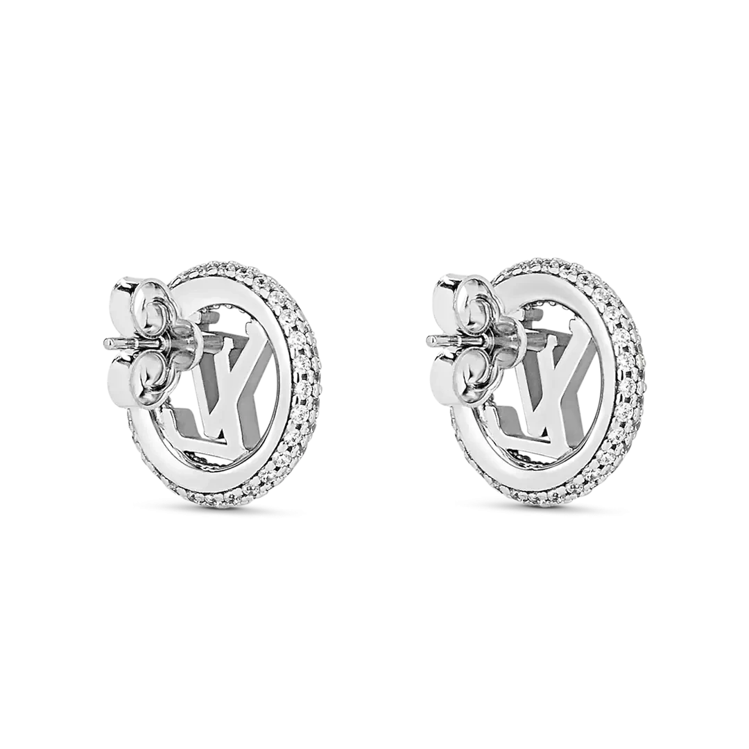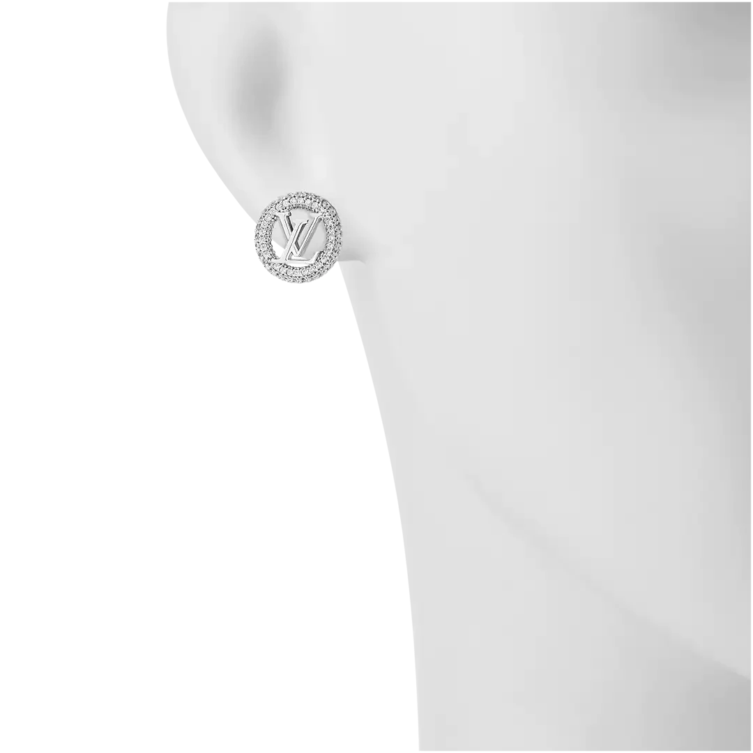 The Louise By Night earrings offer a sparkling take on the beloved House signature. Shimmering crystals surround a polished metal version of the iconic LV Circle. This bright pair of studs sits seamlessly on the earlobe and is sized to be a striking accessory for evenings.