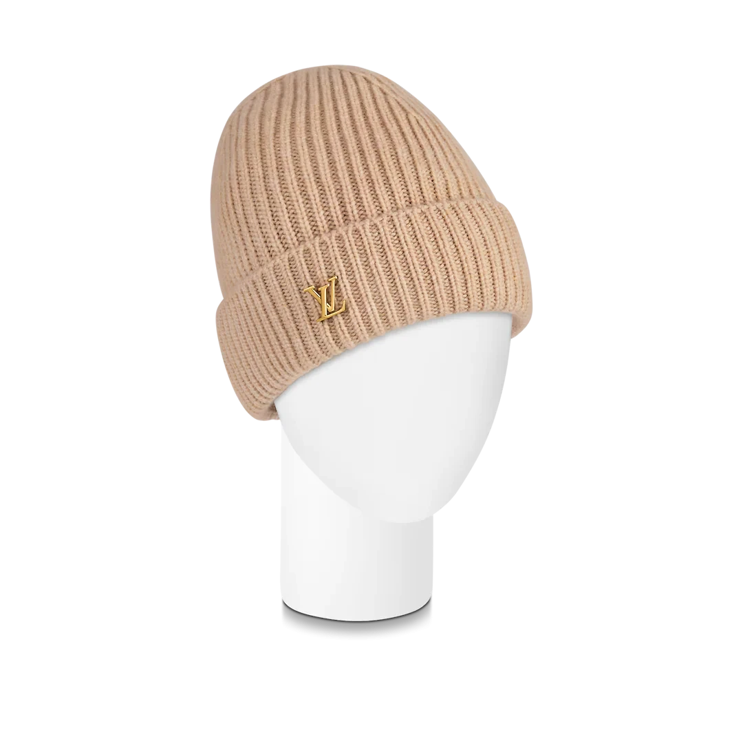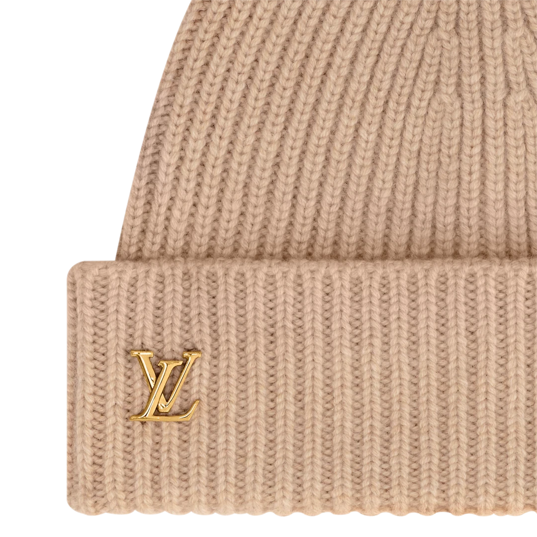 The ribbed LV Spark beanie features a classic construction finished with a polished hardware accent. A turn-up brim enhances the casual aesthetic, while LV Initials in gleaming hardware add a distinguished House detail. This pure cashmere piece is offered in a range of timeless colors for versatile wear.