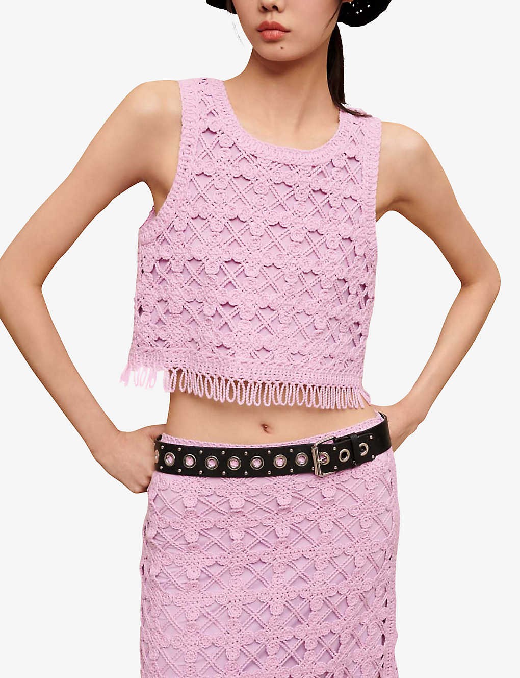 Madagascar crochet fringe-trimmed cotton top