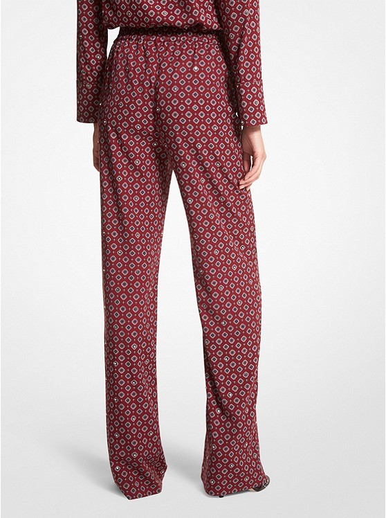 These pajama pants feel as elegant as they look, thanks to their crushed crepe construction. Designed in a straight-leg silhouette, they feature an elastic waist for comfortable wear and handy side pockets. Wear them out of the house with the matching shirt and a pair of slip-on sandals.