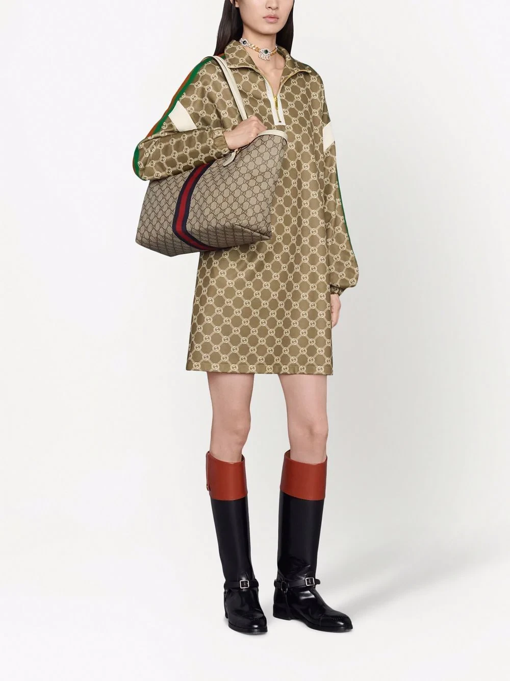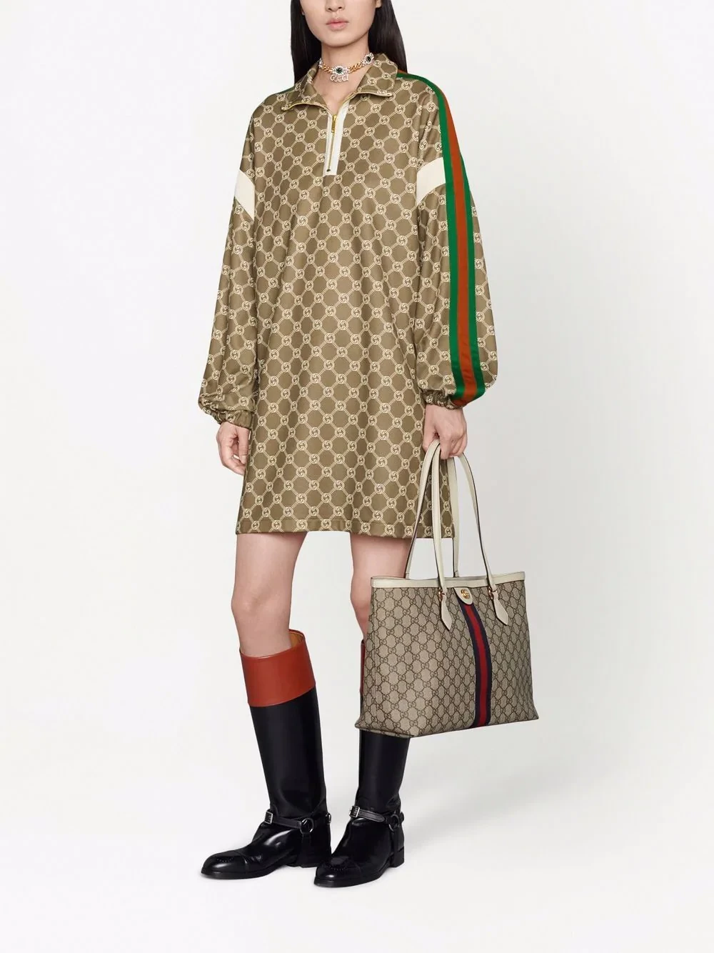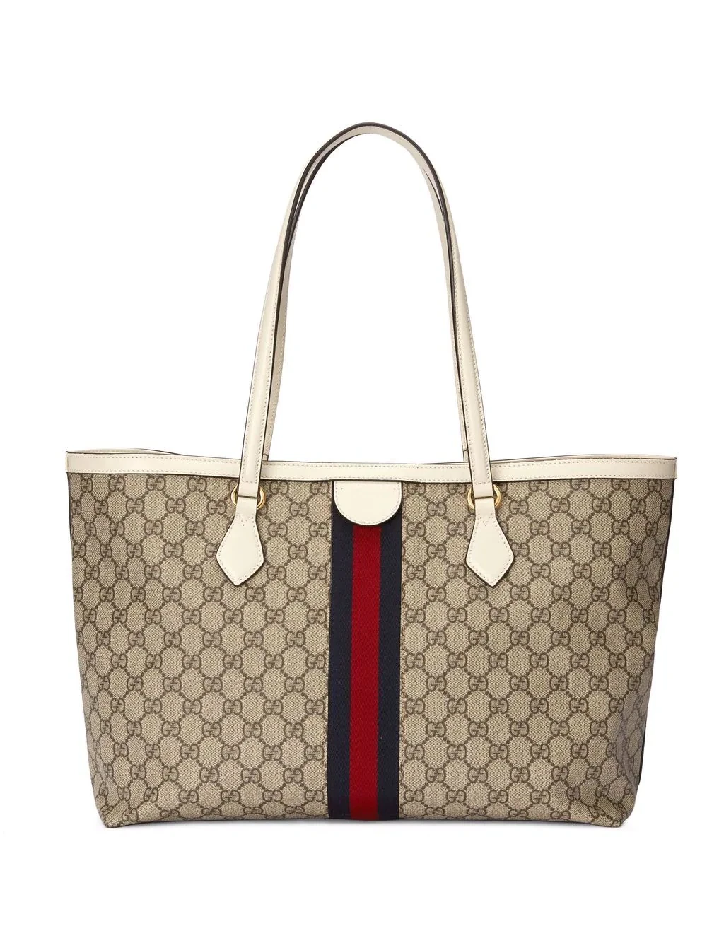 A celebration of house codes, Gucci's Ophidia tote features two of the brand's most recognisable motifs. This spacious medium iteration is decorated with the iconic GG monogram and Web stripe detail.