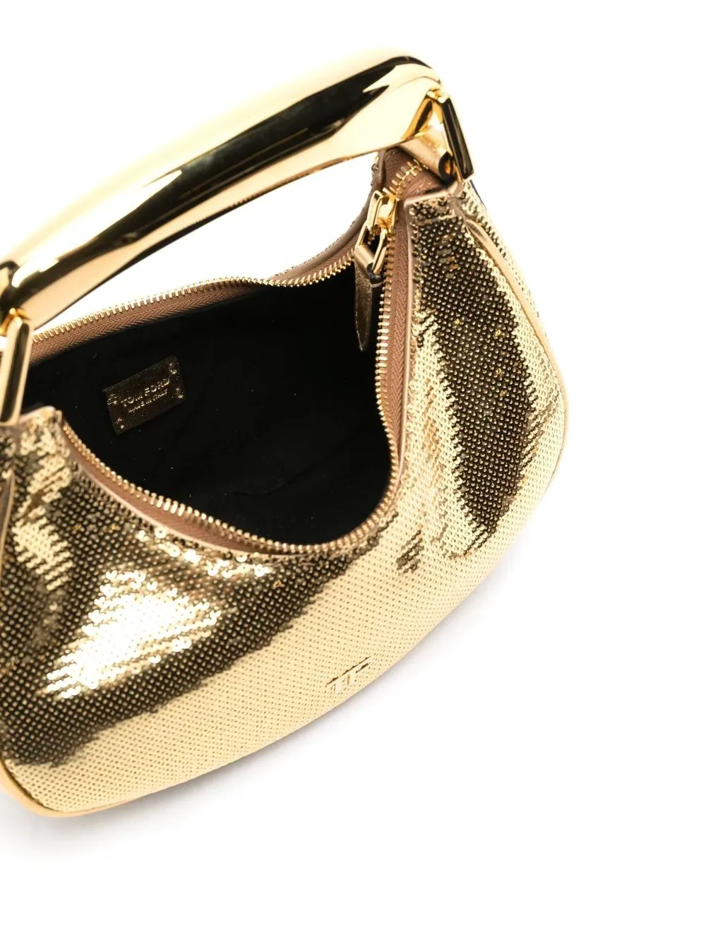 TOM FORD's Bianca bag is recognised by its sculptural gold-tone handle. Made in Italy from sequin-embellished gold-tone leather, it has a croissant-inspired silhouette with a compact design.