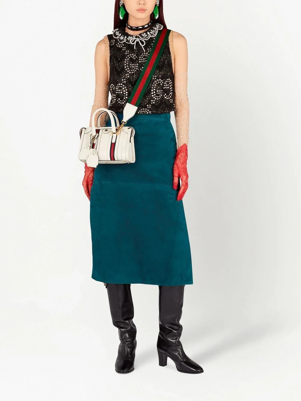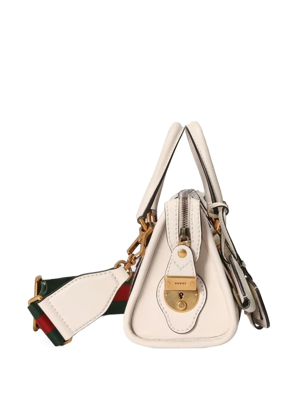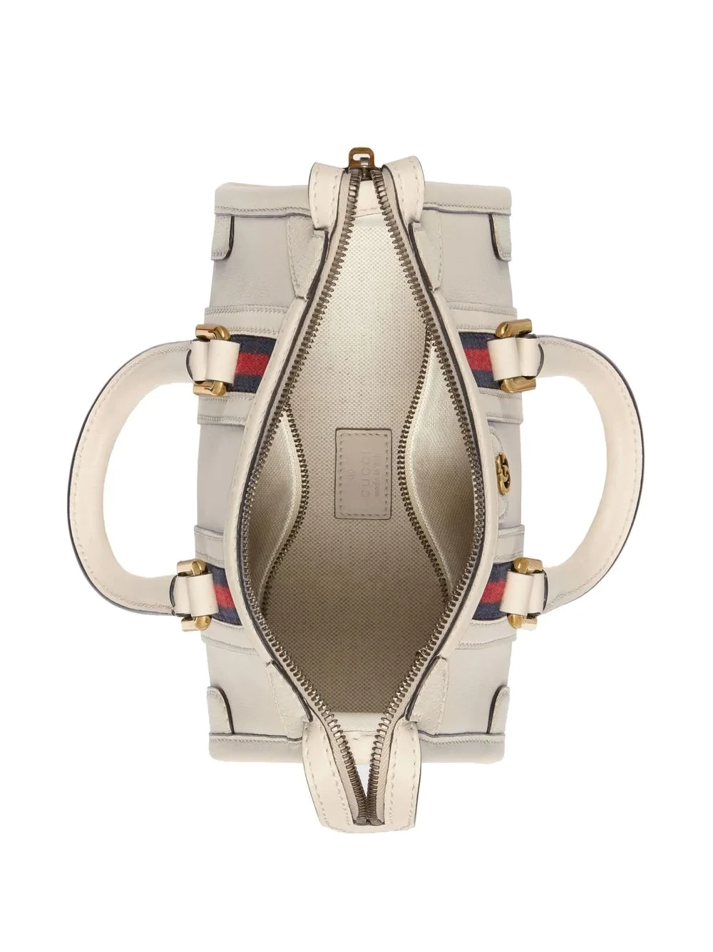 Designed in a contemporary duffle style, this Double G Web stripe tote bag makes its debut as part of Gucci's Exquisite Gucci collection. Crafted from white leather, the design features a signature Web stripe trim and Double G logo motif.