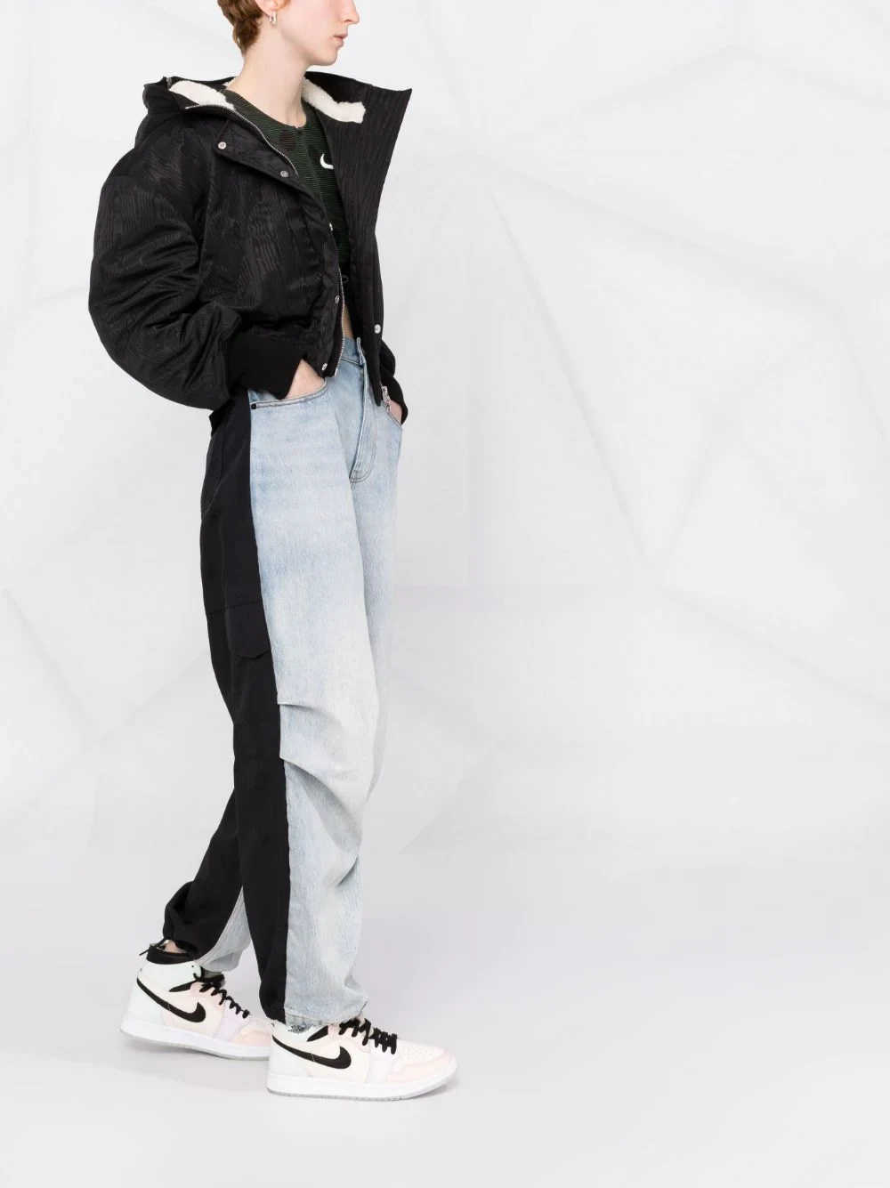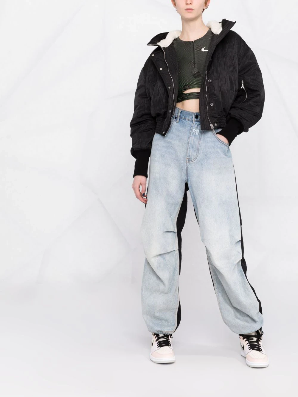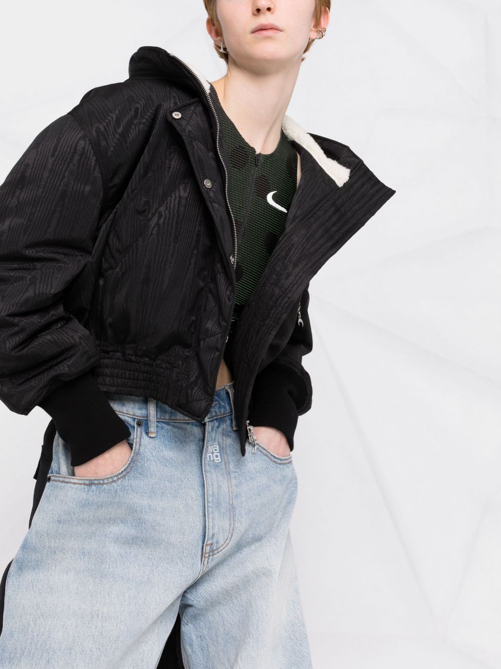 Marine Serre uses recycled and high tech fabrications in their future-focused collections that channel the brand's eclectic spirit. Designed with a black moiré-effect, this cropped bomber jacket from AW21 is detailed with a faux shearling-lining and two side slip pockets.