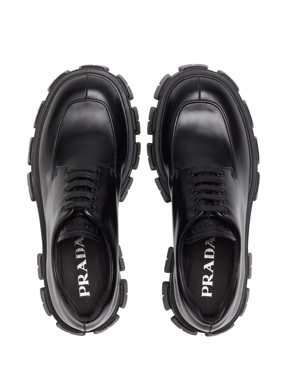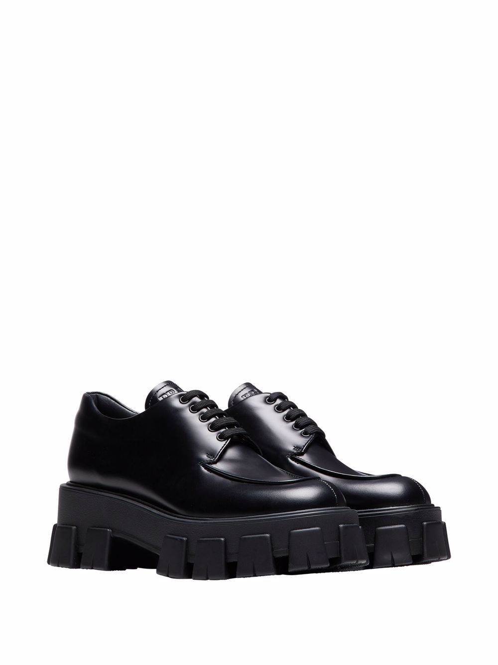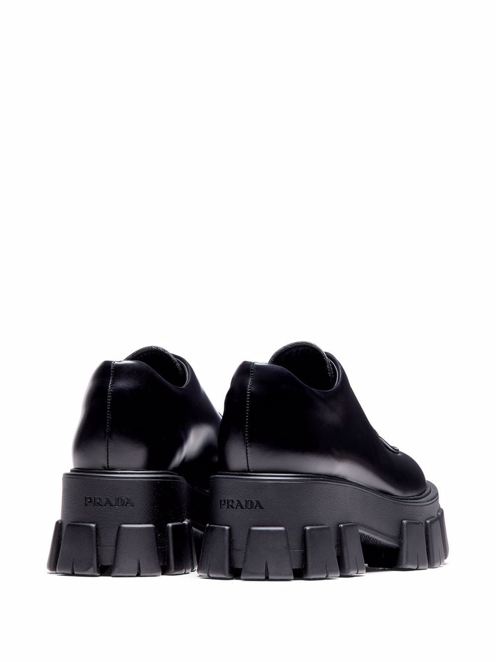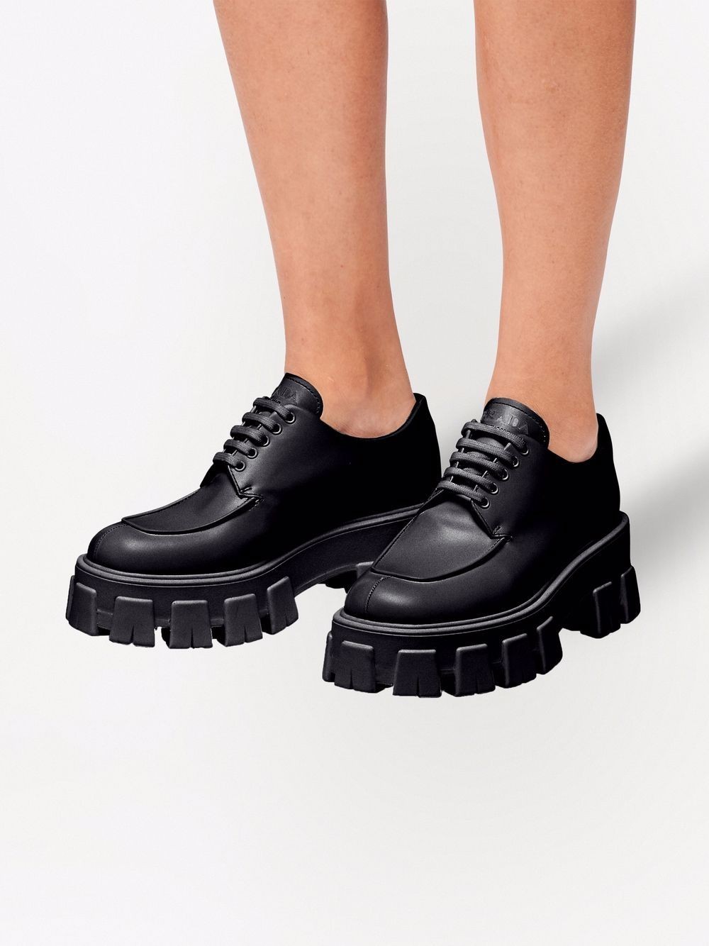 Designed to draw the eye, the chunky sole takes the focus on these Prada Monolith shoes. Finished with a debossed logo to the tongue, the pair is instantly recognisable.