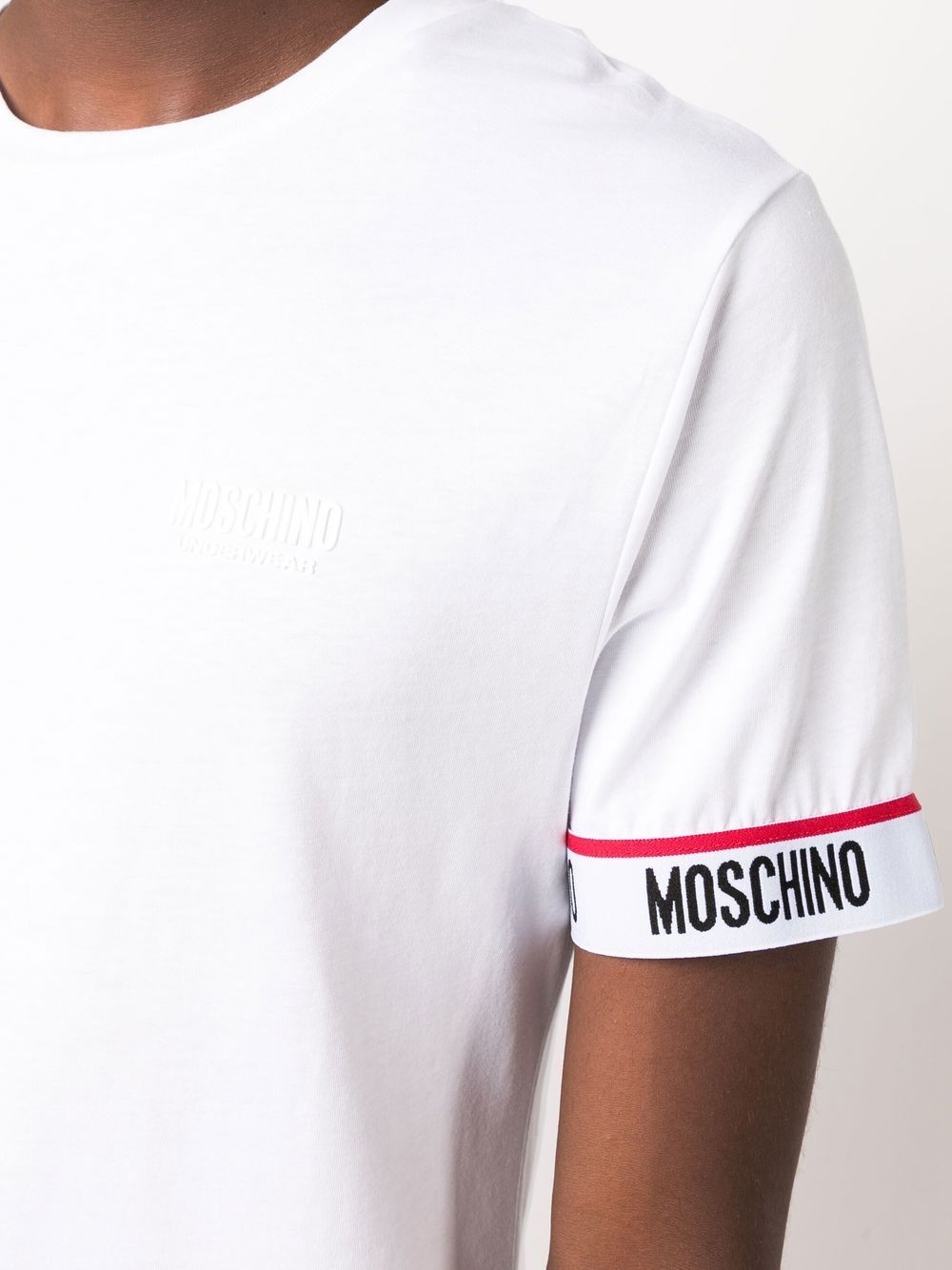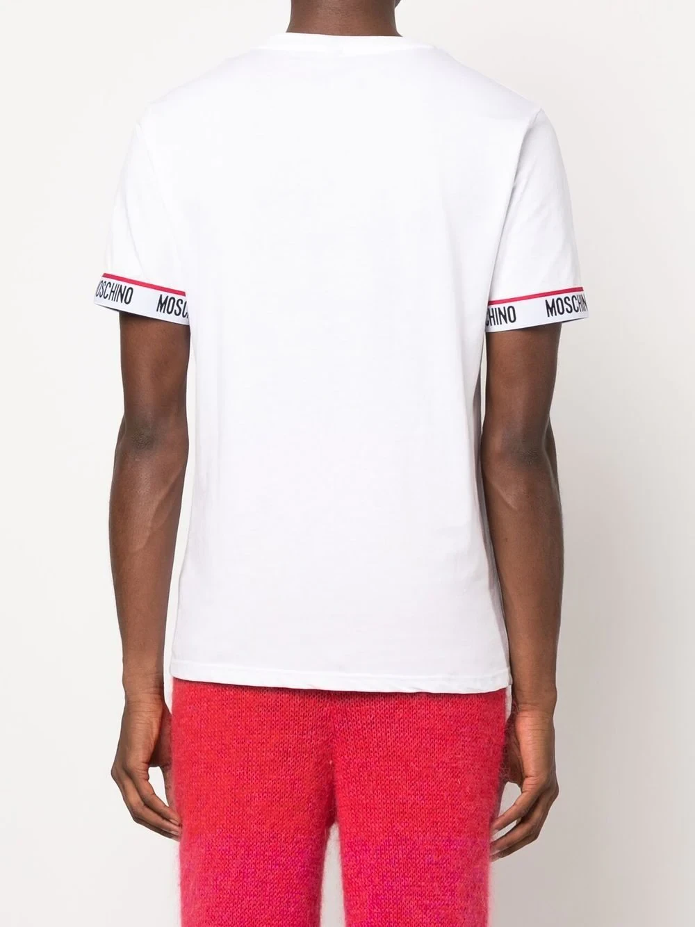 Moschino is notorious for adding logo prints and patterns to wardrobe essentials. The label presents a more discrete version of this by way of branded trims outlining the sleeves of this T-shirt.