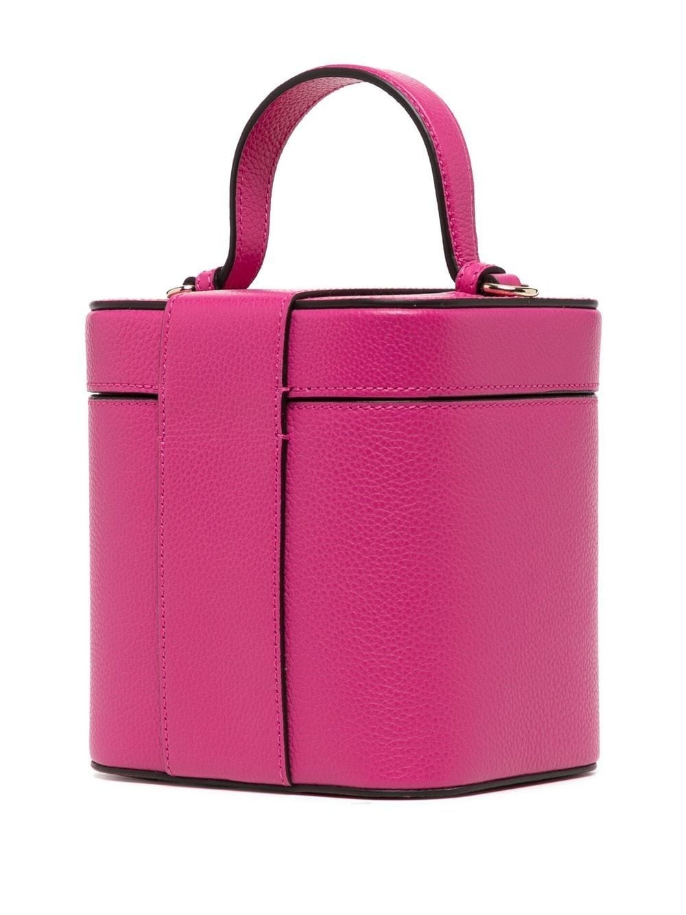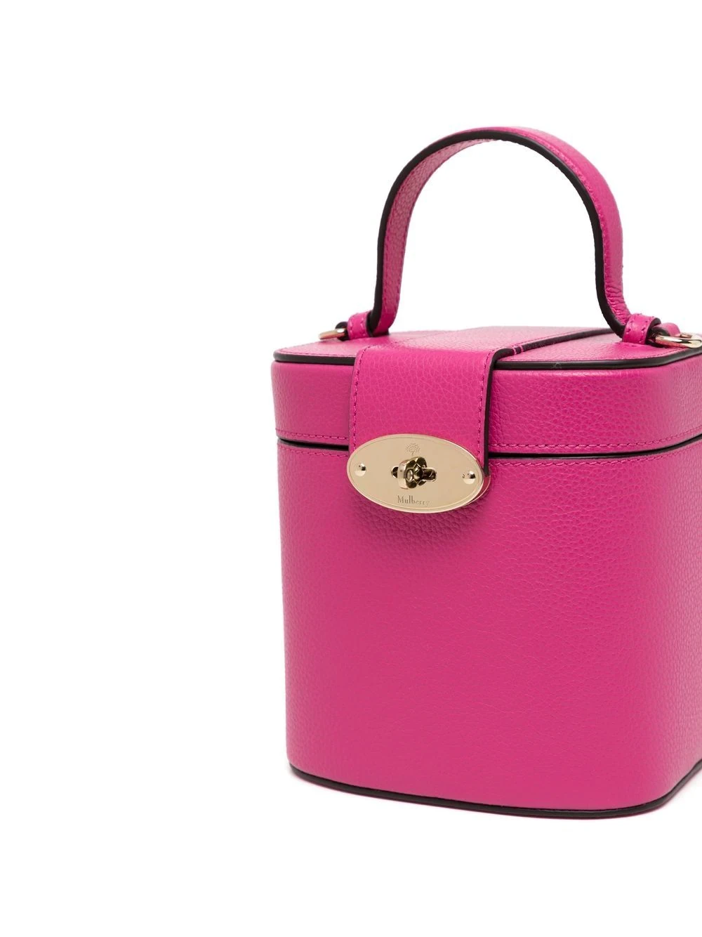 small Vanity tote bag from MULBERRY featuring fuchsia pink, leather, grained texture, engraved logo, gold-tone hardware, main compartment, foldover top, twist-lock fastening, single flat top handle and detachable shoulder strap.