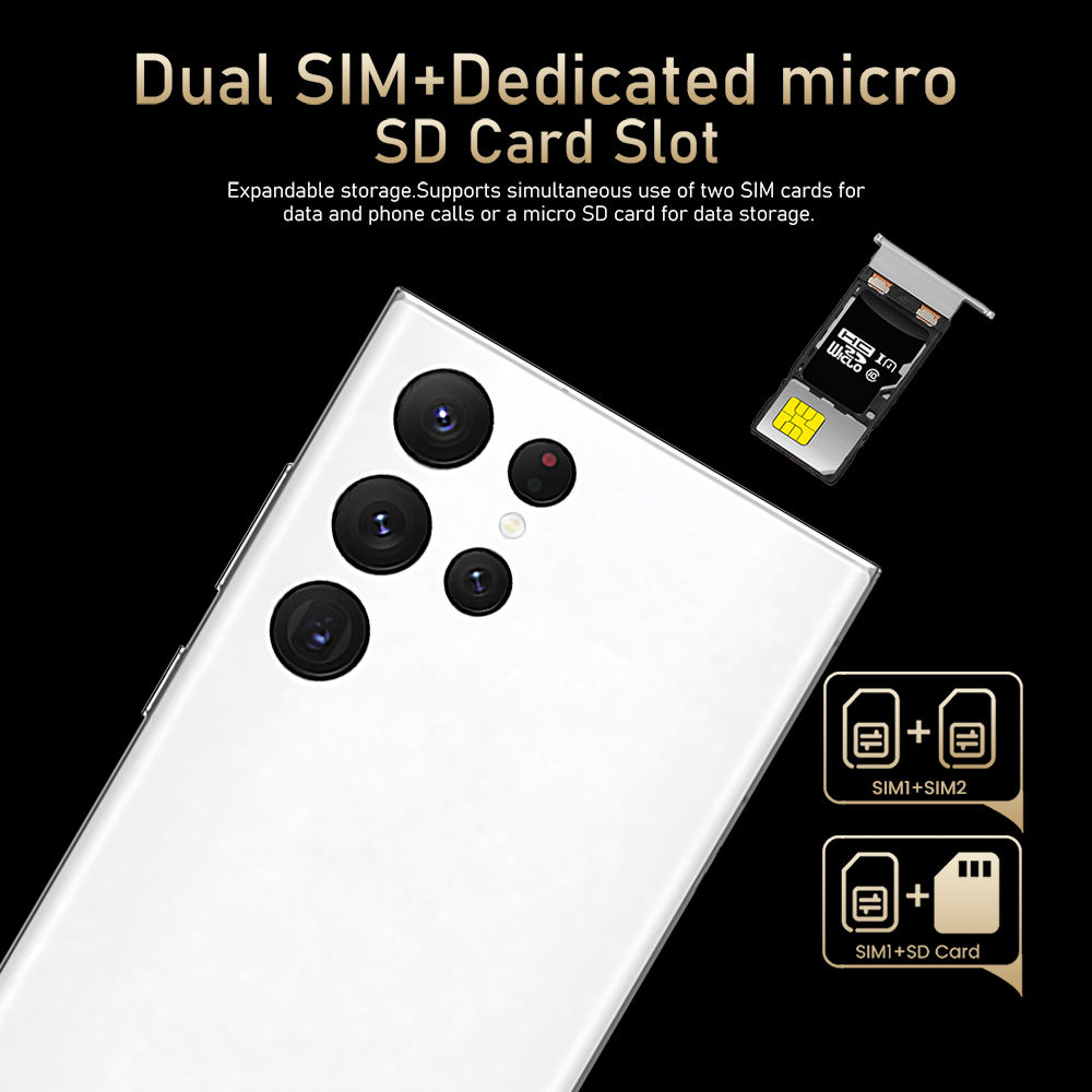 Essential details Private Mold: Yes Brand Name: Other CPU: Quad Core Screen: >7" Processor Brand: MTK 67XX series Front Camera: 24.0MP Rear Camera: 48 MP Screen Resolution: 2560x1440 Cellular: GSM, WCDMA Display Type: OLED Operation System: ANDROID 12 Model Number: S23 Ultra Phone Feature: Dual SIM Card, Qwerty Keyboard, Waterproof, Quick Charge, Shockproof, Gaming, Beauty Camera, NFC, fingerprint, Gesture control, Face Recognition, SDK available Quick charge: 65W Display refresh rate: 90Hz Battery Capacity: 6000-6999mAh Mobile phone type: Smart phone Material: Aluminum Alloy USB Type: TYPE-C Size: 7.3 Inch Colors: black, white, rose gold, green, red, light green, dark black Interface Type: Typc-C MOQ: 1 pcs Logo: Accept Customized Logo Printing SIM Card: Dual SIM Card Dual Standby OS System: Android