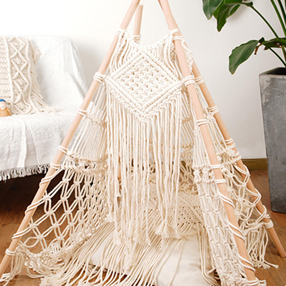 Essential details Type: Other Home Decor, Net Tent Occasion: Anniversary Design Style: Bohemian Place of Origin: China Model Number: EH2205133 Material: Cotton Wood Product Name: Nordic Hand-woven Macrame Wooden Stick Kids Cotton Net Tent Home Decor Usage: Home Decoration Wedding Decoration Color: Beige Size: Pole length 120cm MOQ: 1 Piece Packing: OPP Bag Carton Style: Nordic style OEM: Accpected Wash Care: Hand Wash/Dry Clean