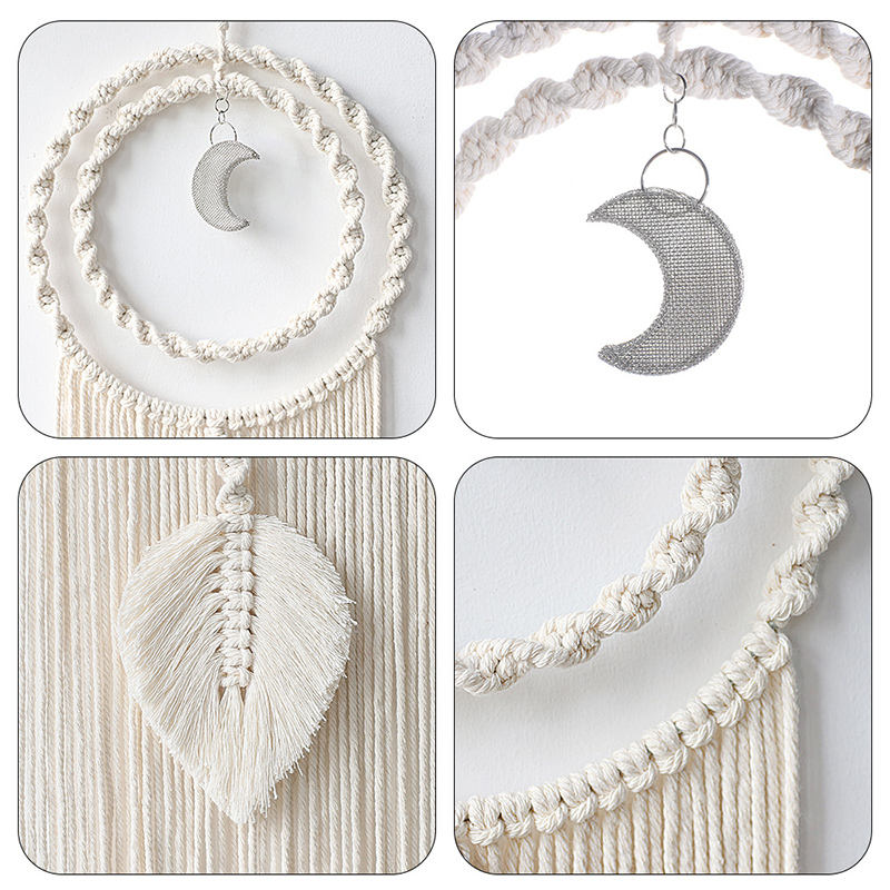 Essential details Place of Origin: China Brand Name: MOFITOS Model Number: MH803 Material: Cotton, Cotton Usage: Decorative Shape: Irregular, Moon / Customized Occasion: Thanksgiving Format: Rope Technics: Weave, Macrame Theme: Art Specification: Single-piece Package Function: hanging, MOVABLE Design Style: Bohemian Product Name: Dream Catcher Wall Decoration Use: Home Party Wedding Decoration MOQ: 5 PCS Size: As Picture Packing: Opp Bag Feature: 100% Handmade