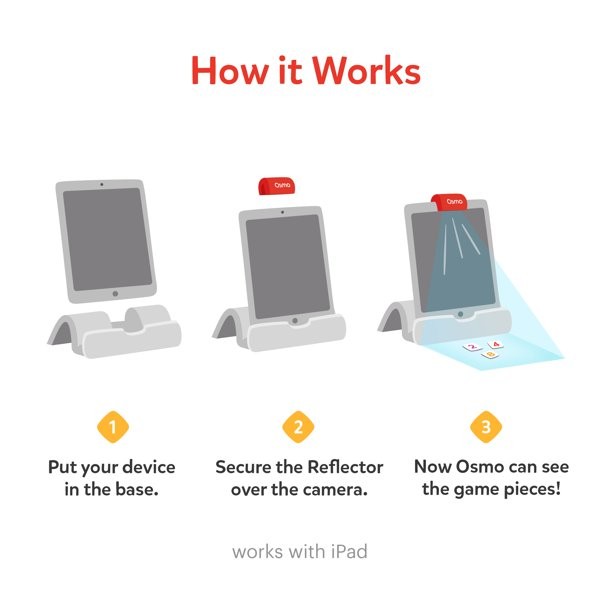 Osmo technology turns everyday learning into captivating experiences. Children draw or arrange play pieces within Osmo?s view to interact with the world on their screen. (No Wi-Fi required to play).