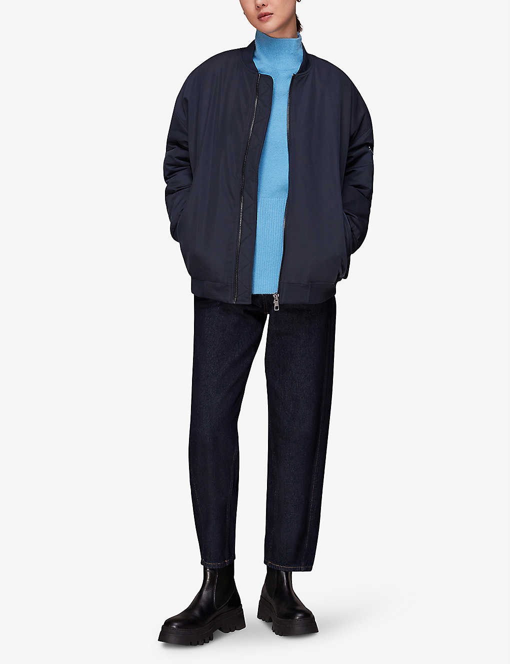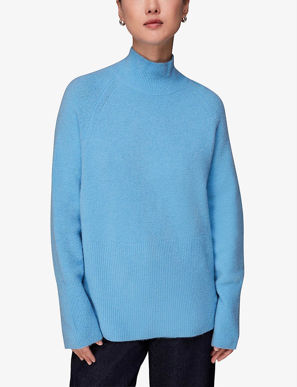 Oversized funnel-neck stretch-knit jumper