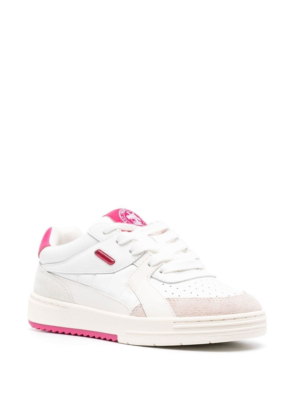 Crafted in white leather with a classic silhouette, these Palm One sneakers are accented with a contrasting heel counter printed with the brand's signature palm tree logo. Palm Angel's lettering is printed on the rear and ties in with the label's penchant for logomania.