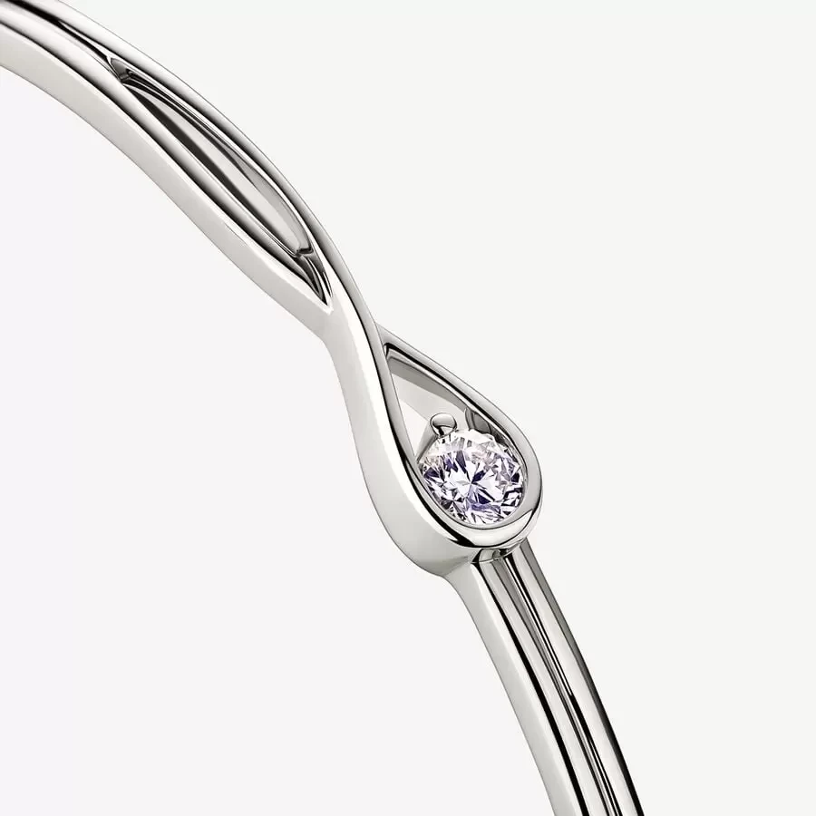 Celebrate your power to shine with this 14k white gold bangle, hand-set with a radiant 0.25 carat lab-created diamond. The excellent cut round brilliant lab-created diamond floats inside our unique infinity motif, which flows around the stone as if it's ethereally suspended in mid-air. Our closed bangle design features a slender profile and functional hinge and clasp mechanisms, promising security and comfort. We recommend handling it with extra care to ensure optimal functionality and longevity. Let yours shine alone or inspire an elevated everyday stack.