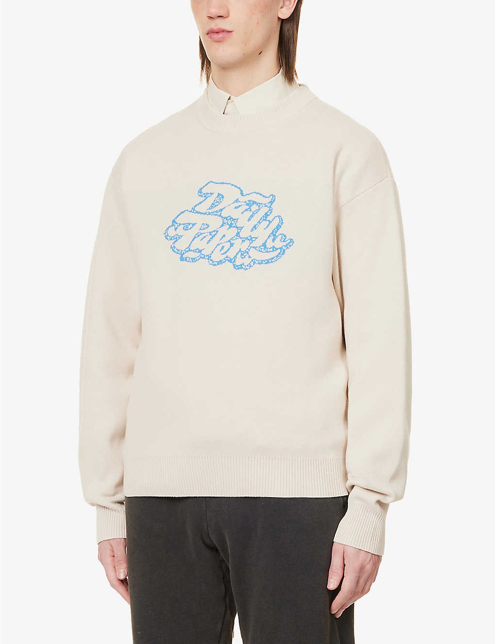 Regular fit, crewneck, long sleeves, branded text at front, medium knit, ribbed trims