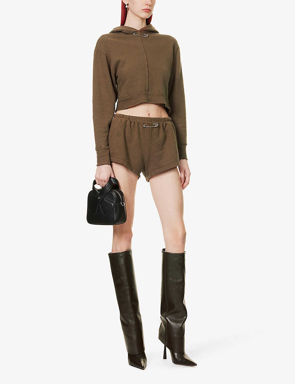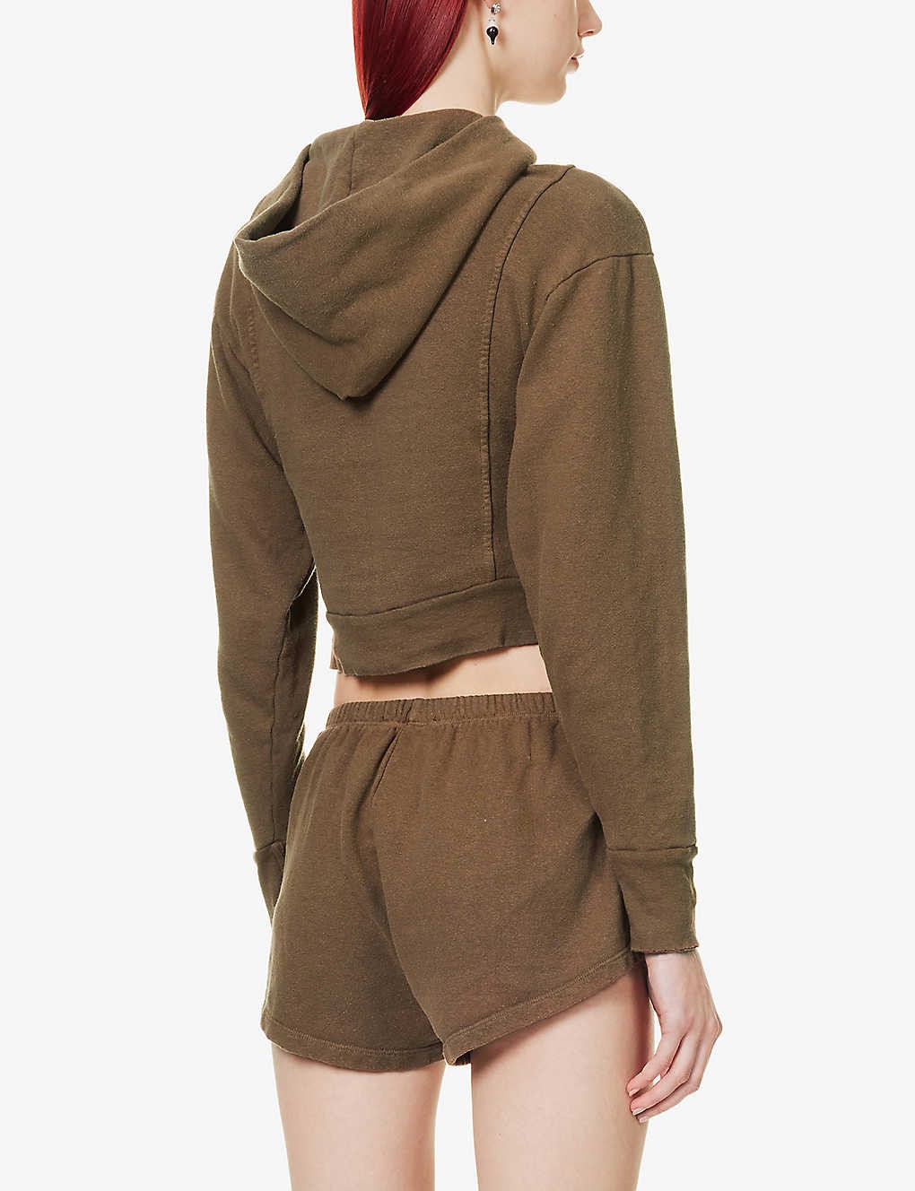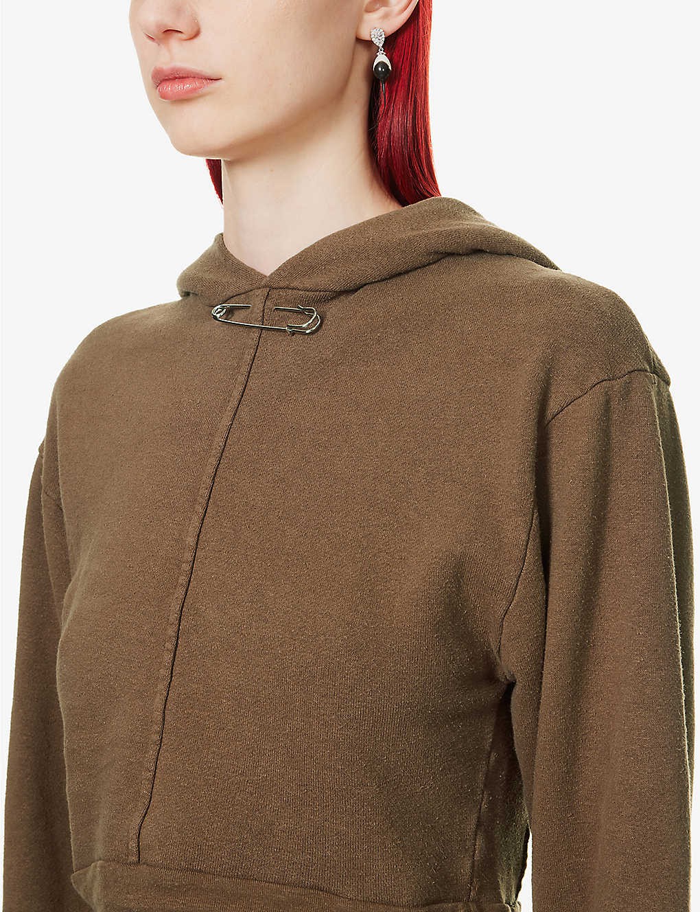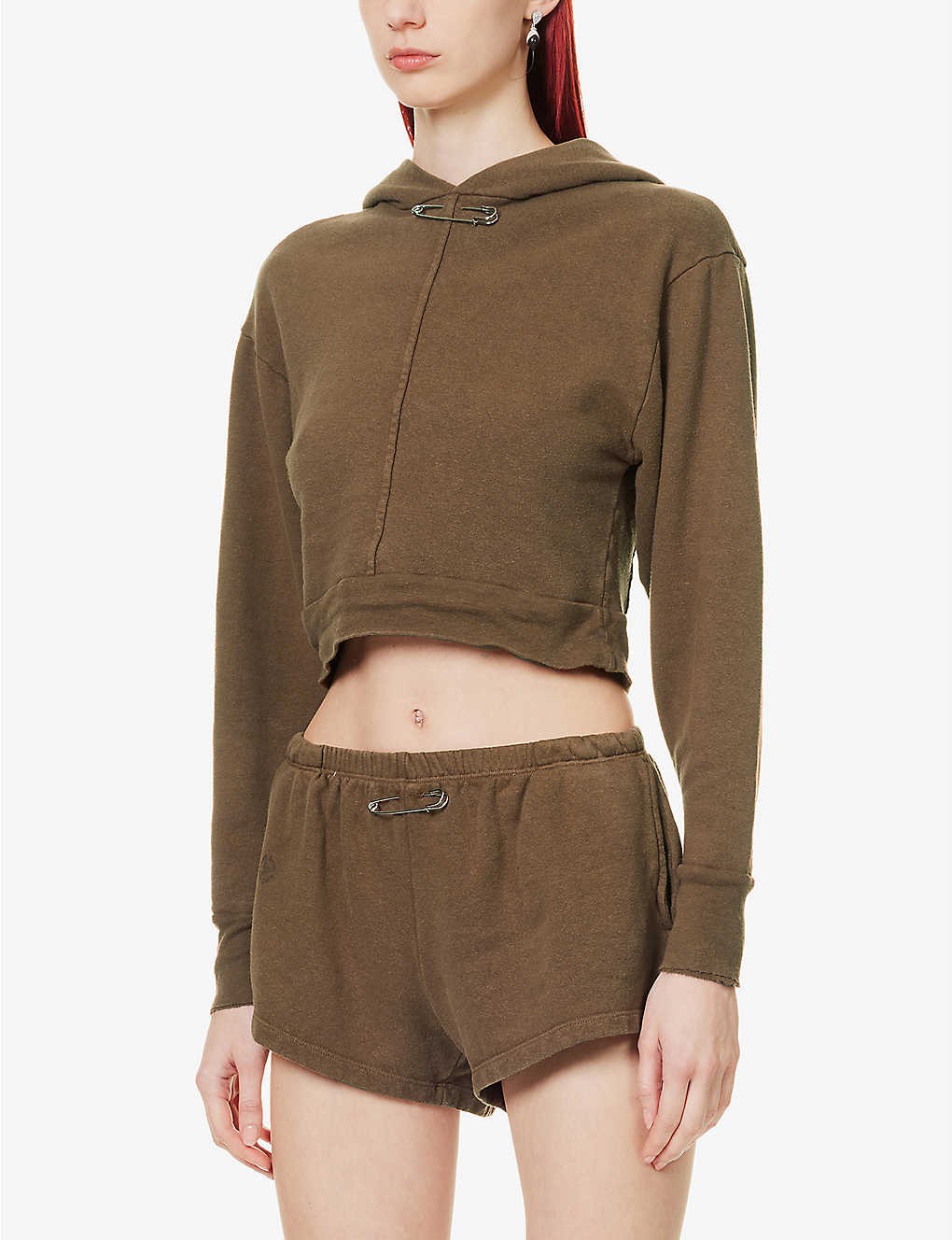 Pin-detail cropped organic-hemp and cotton blend hoody