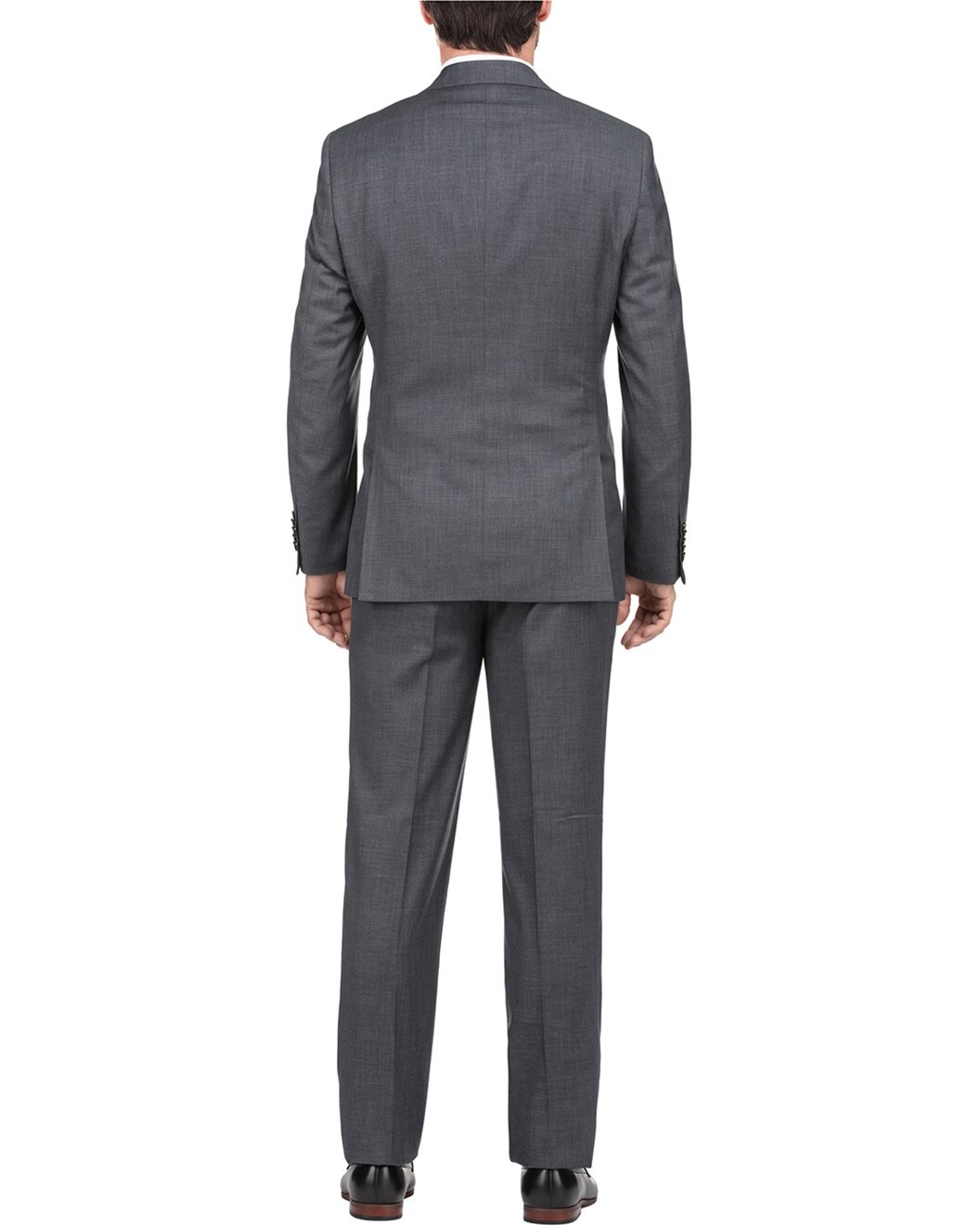 Design details: notched lapel, left chest pocket, two front flap pockets, button accents at cuffs, side vents at back hem and three interior pockets